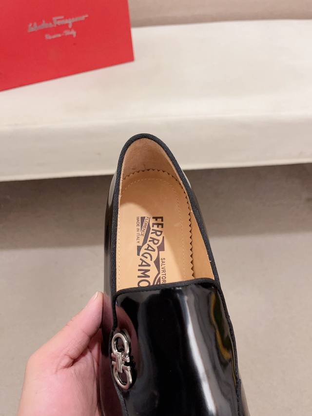 出厂价: 高版本 菲拉格慕 Ferragamo 品质! 独家爆款现货新品上架,高品质牛鞋,高端开车鞋,配全套包装!材质:进口漆面牛皮+进口优质水染牛皮内里+耐磨