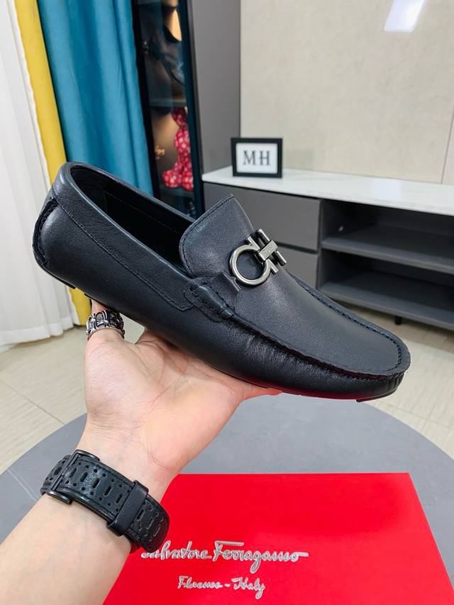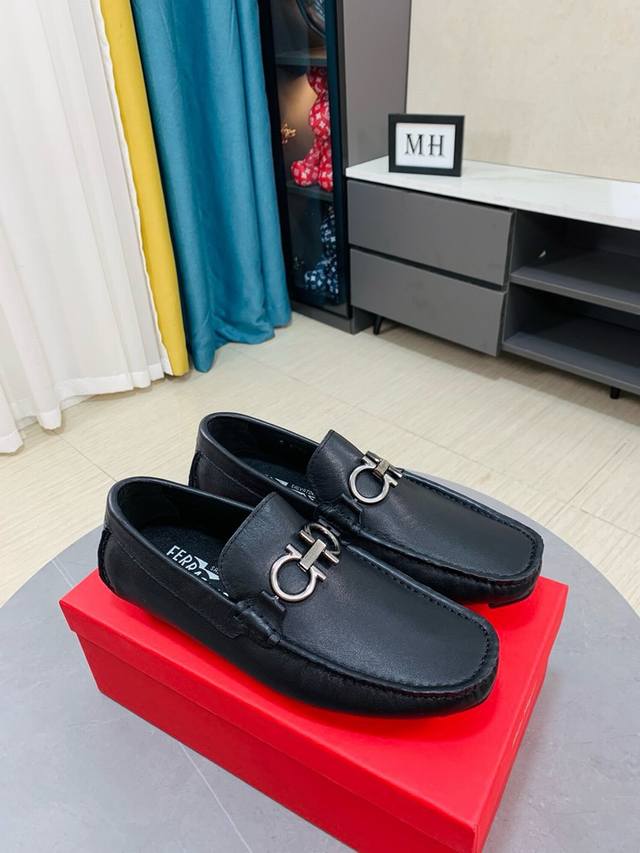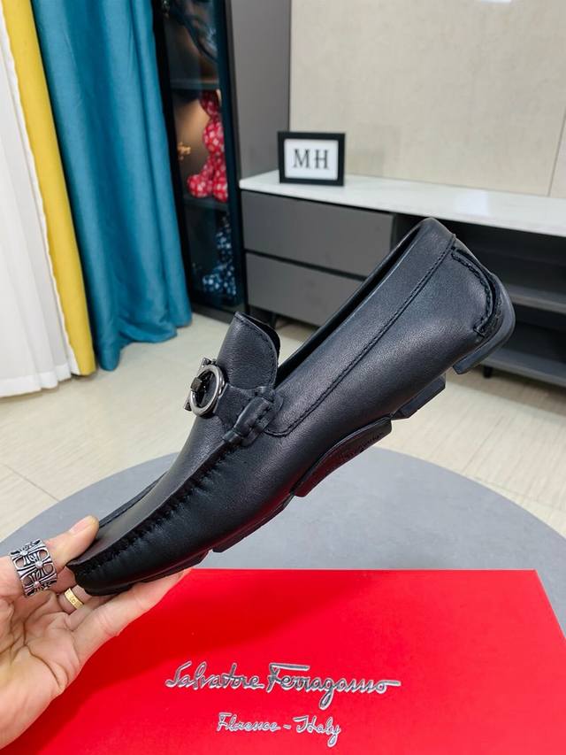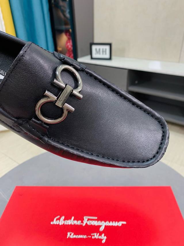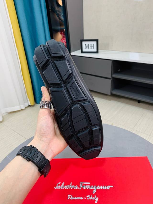 出厂价p 内配有包装 Ferragamo 菲拉格慕爆款时尚豆豆鞋原版开模好质量看得见,进口高端头层牛皮荔枝纹奢华羊皮内里纹路很清优质防水防滑耐磨大底高品质低价位,真正的纯手工制作码米38-44