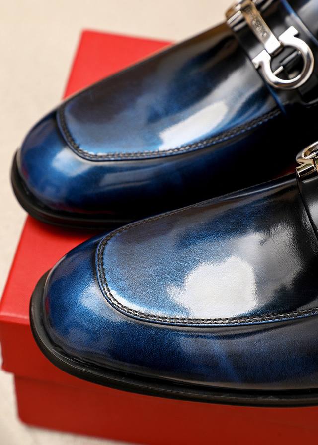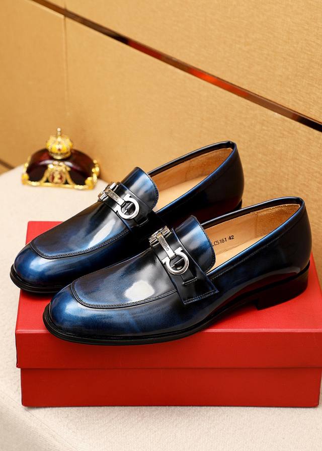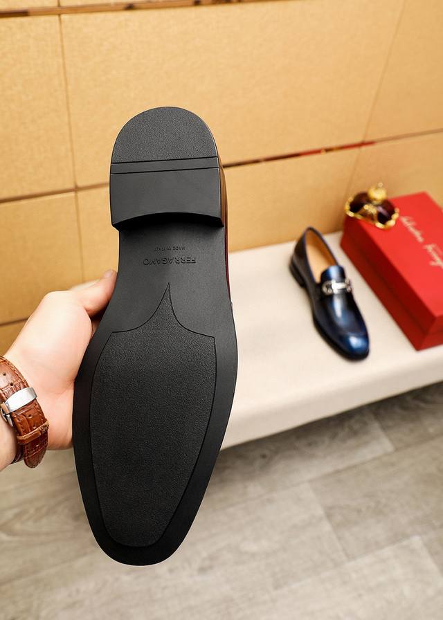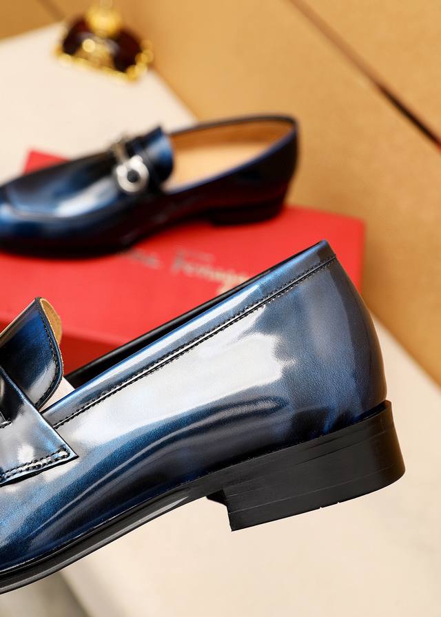 / 商品商标:Ferragamo 菲拉格慕 休闲皮鞋正码码数: 38-44 45.46.47订制商品材料:精选 进口开边珠牛皮鞋面+经典五金扣,进口水染牛皮内里 强