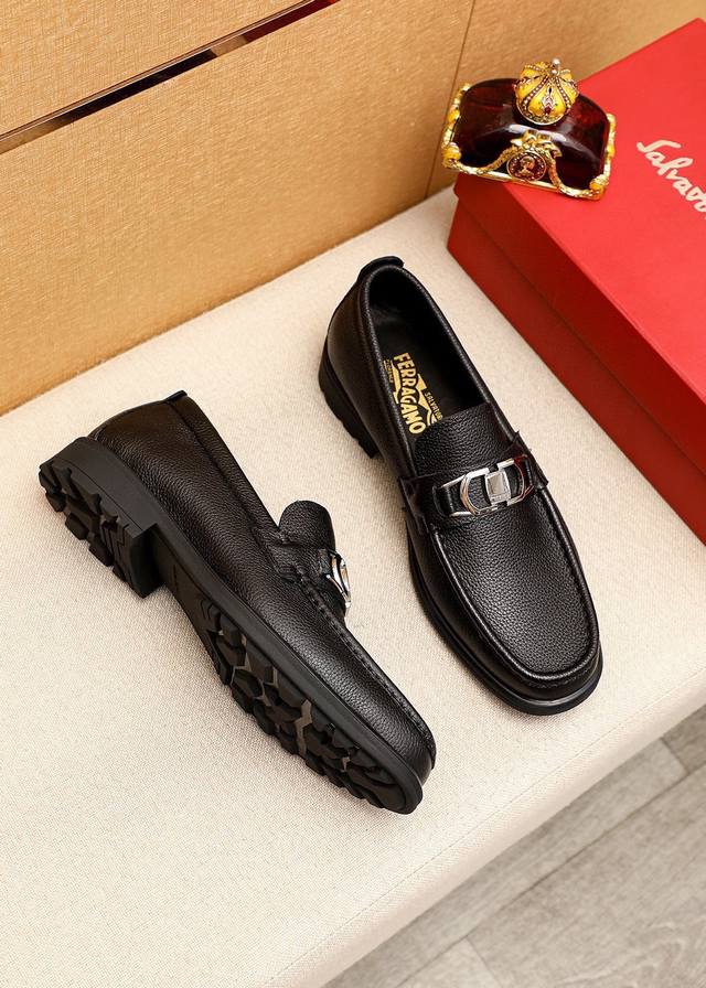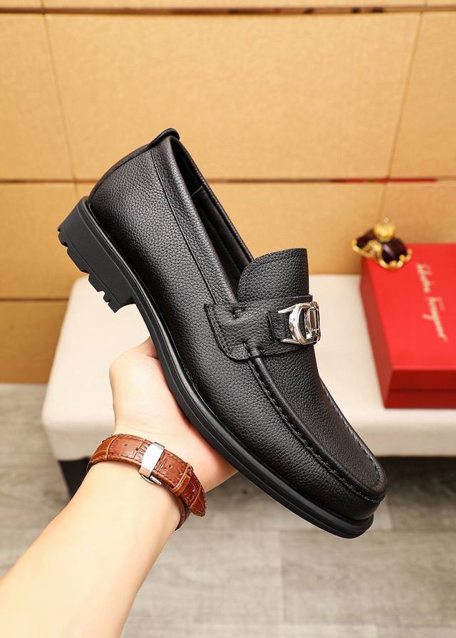 / 商品商标:Ferragamo 菲拉格慕 休闲皮鞋正码码数: 39-44 38.45.46订制 商品材料:精选 进口头层荔枝纹小牛皮鞋面+经典五金扣,进口水染牛皮