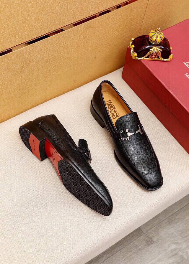/ 商品商标:Ferragamo 菲拉格慕 休闲皮鞋 正码码数: 38-44 45订制 商品材料:精选 进口头层荔枝纹牛皮鞋面+奢华五金扣,进口水染牛皮内里。强烈立