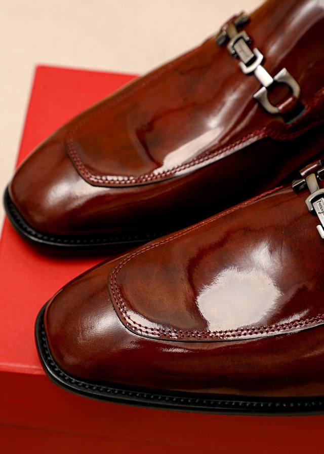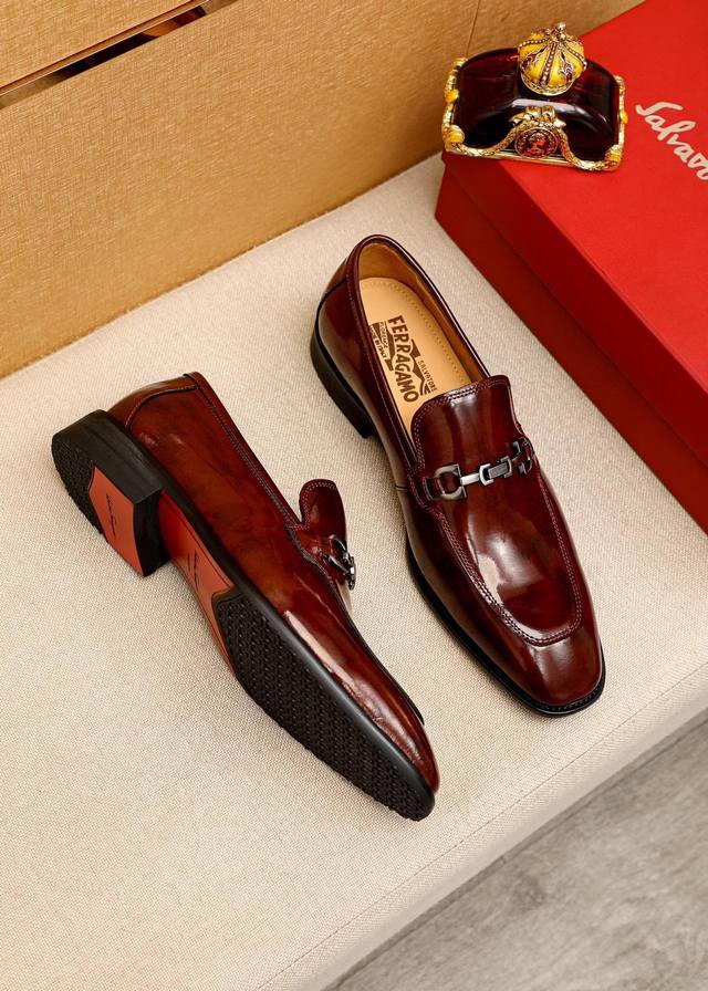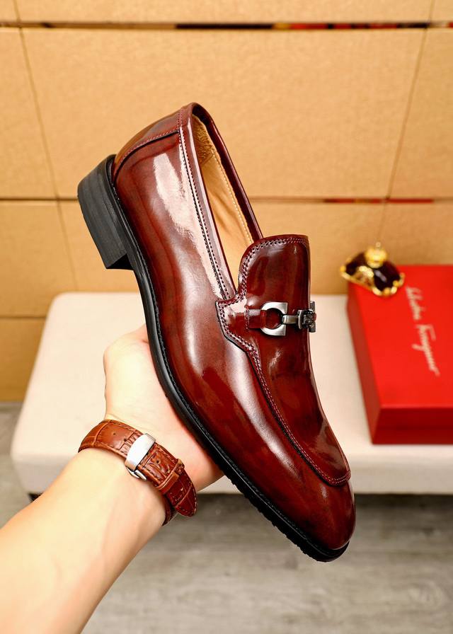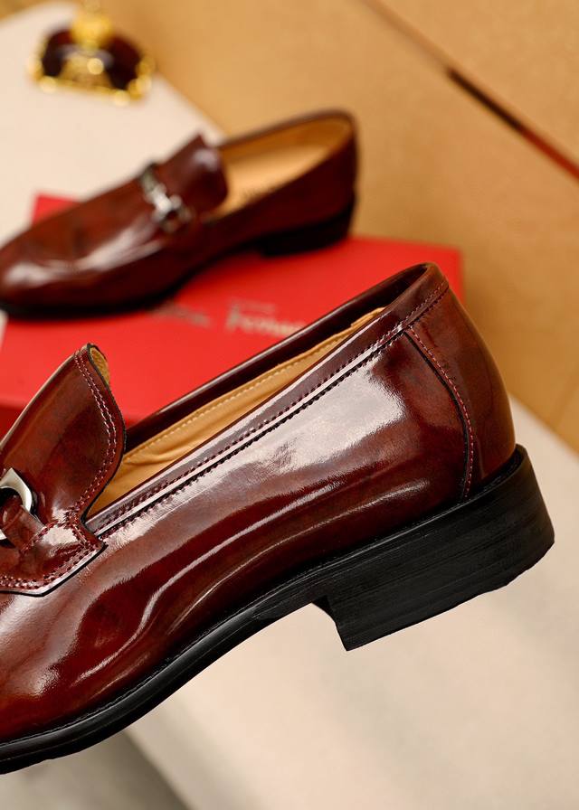 商品商标:Ferragamo 菲拉格慕 休闲皮鞋 正码码数: 38-44 45订的制 商品材料:精选 进口头层开边珠牛皮鞋面+原版五金扣,进口水染牛皮内里。强烈