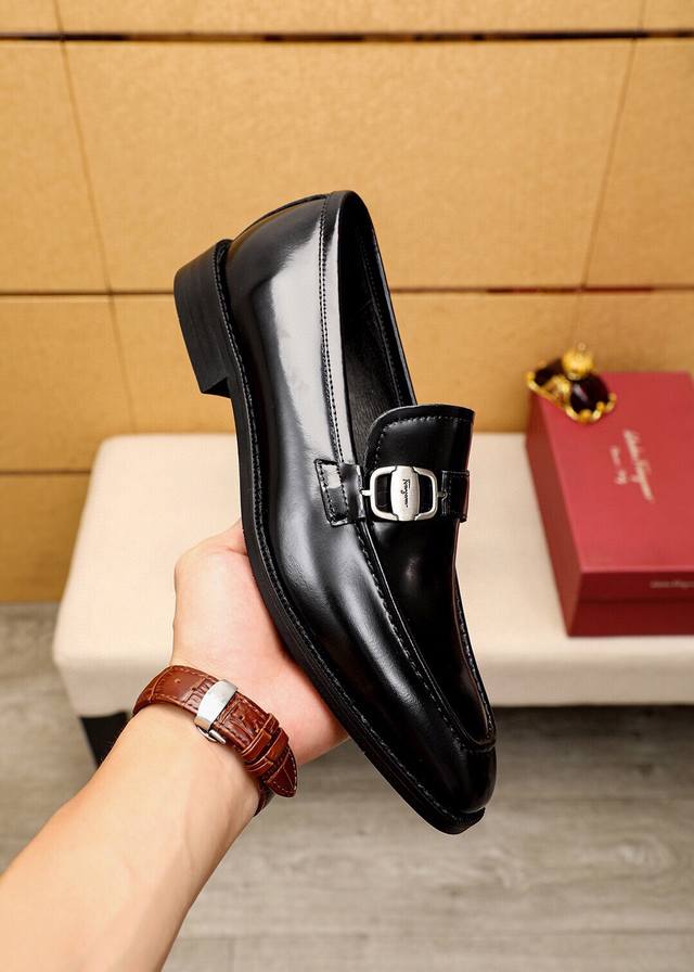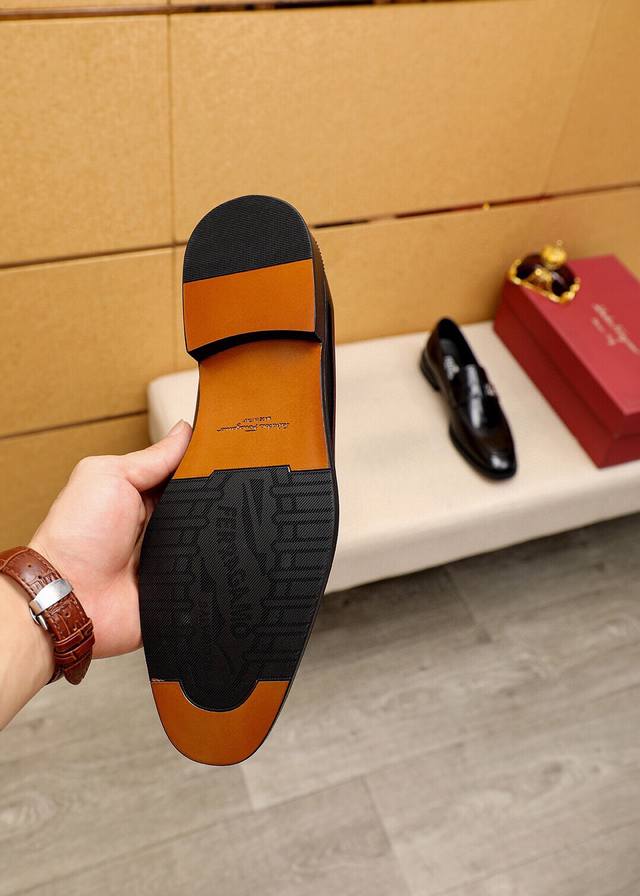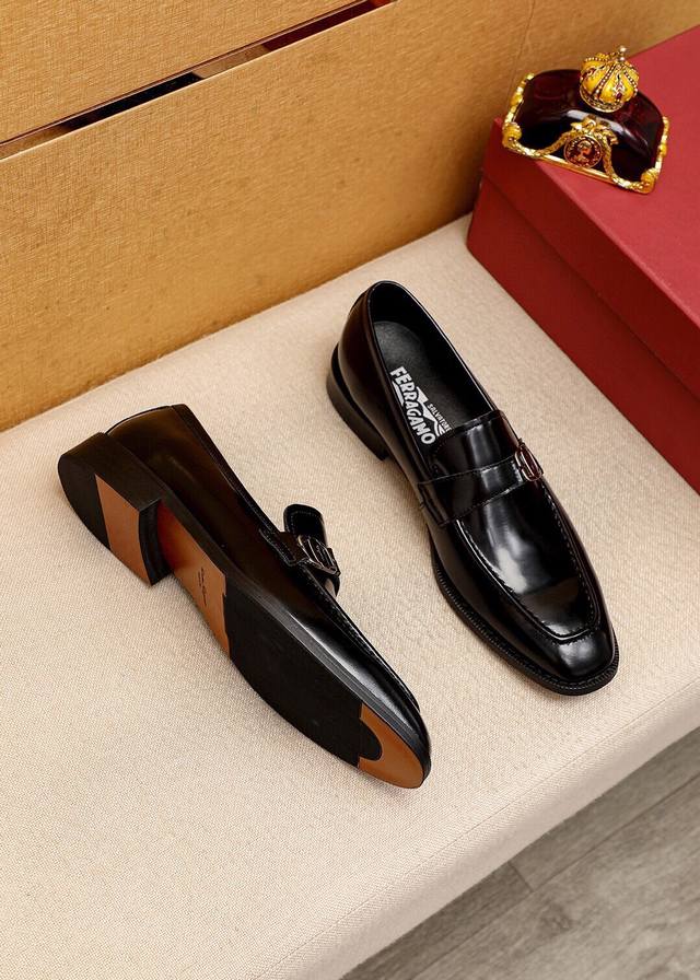 专柜品质顶级代购菲拉格慕爆款!2024男士正装皮鞋!纯正高品质可1:1比较!面料:意大利进口原版定制小牛皮!内里:全进口水...