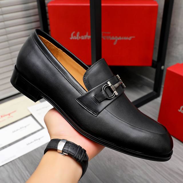 商品商标:Ferragamo 菲拉格慕 ] 正装套装皮鞋 正码码数: 38-44 45.46.47订做不退换 商品材料:精选 头层牛皮鞋面 牛皮内里原版大底