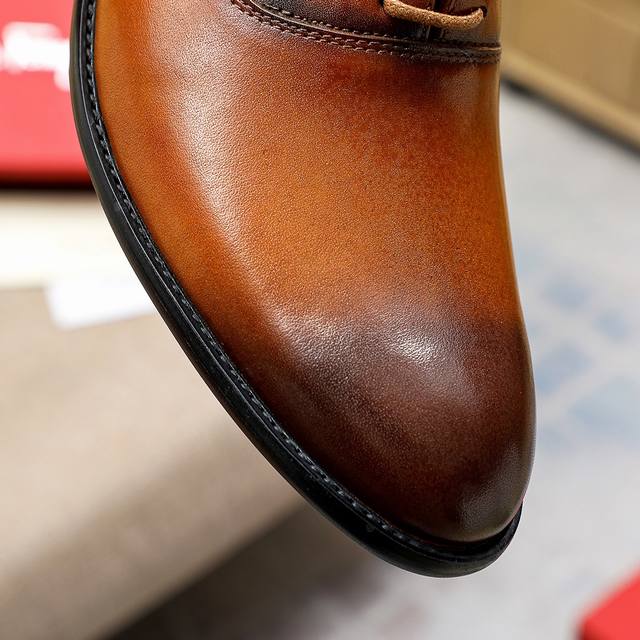 Ferragam* 哑光软开边珠 Pu软厚底 商务皮鞋 进口开边珠牛皮 最好的皮革产品,价格P和质量最高,光泽 手感 皮面等指标一流...