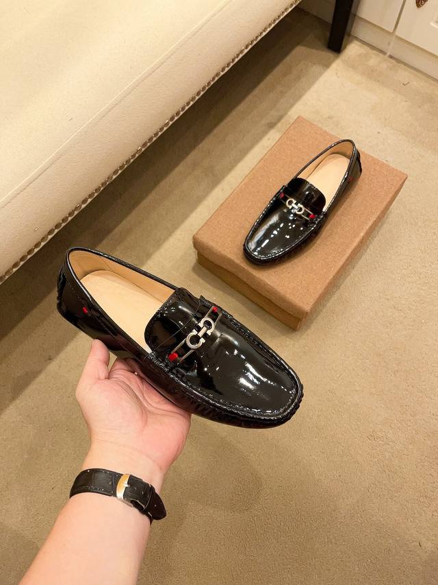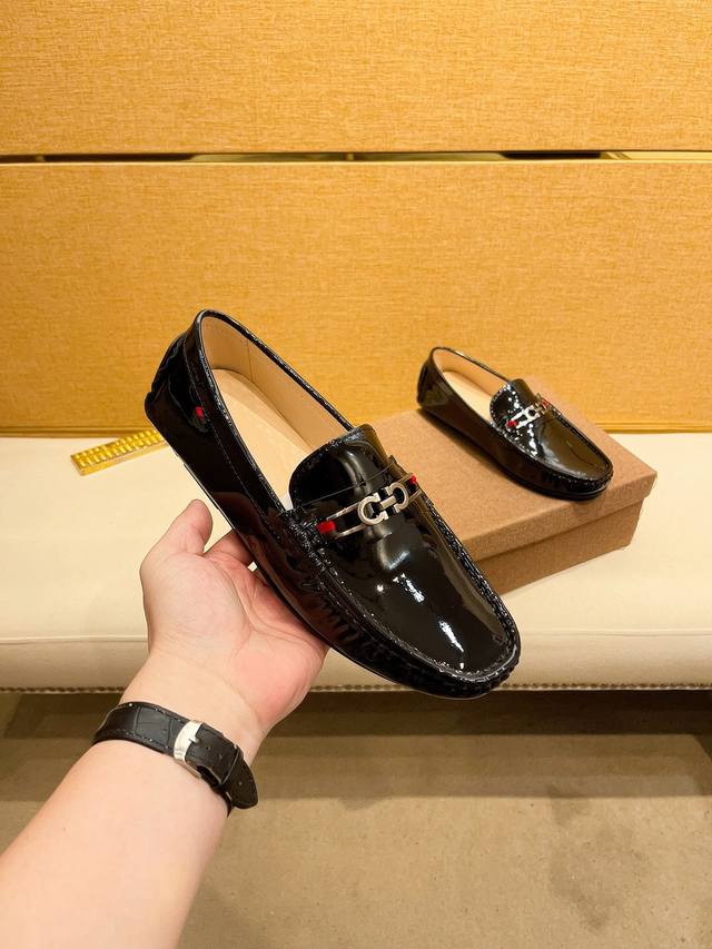工厂p价 菲拉格慕 男士新款豆豆鞋上市 原单品质 官网1:1同步头层牛皮皮内里,完美造型顶级品质,橡胶耐磨大底,,鞋型饱满,立体感十足超级百搭 高档不失品味,时尚、新颖 。色可选!码数:38-44 45订做