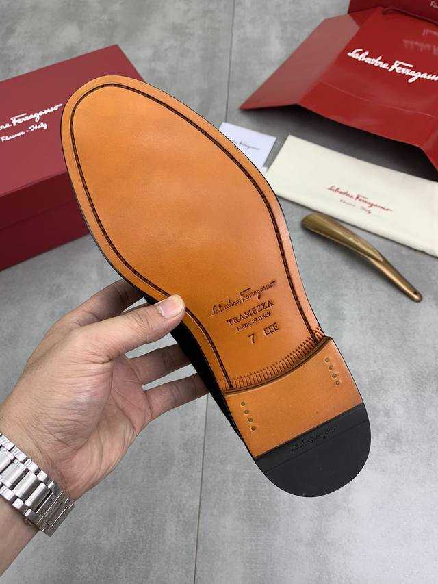 工厂P价P 顶级品质 真皮大底系列 Salvatore Ferragamo 菲拉格慕商务皮鞋,1:1顶级代购品质,鞋面进口精选原版磨砂小牛皮,内里垫脚均用进口原版水染牛皮,进口原版订制意大利手工真皮大底,码数:39-44 38 45可以定做