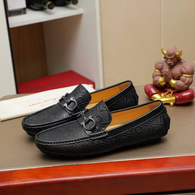 调工厂p价 男装男鞋 运动原单 菲拉格慕 新款豆豆鞋、专柜一比一制作原单品质、进口牛皮鞋面皮垫里原版橡胶大底、{高品质看得见}色。码数:38-44 45.46订做