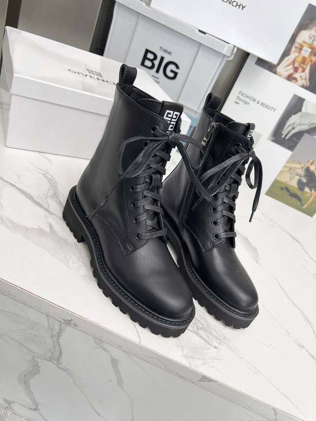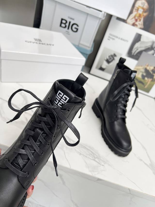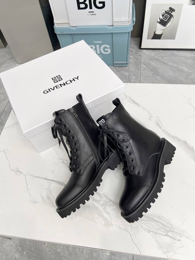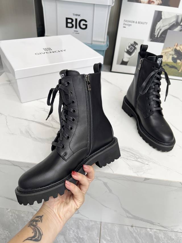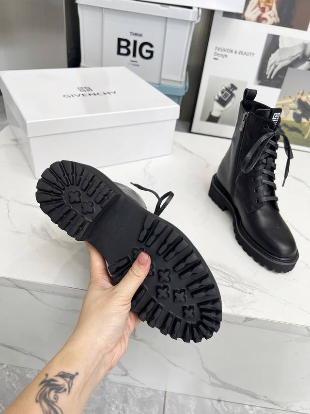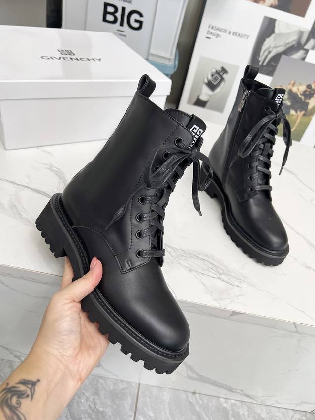 款纪梵希马丁靴,纪梵希链条风格,时尚潮流,时尚达人专配靴,简约不简单。面料:牛皮,牛漆皮,内里:羊皮,大底:橡胶...