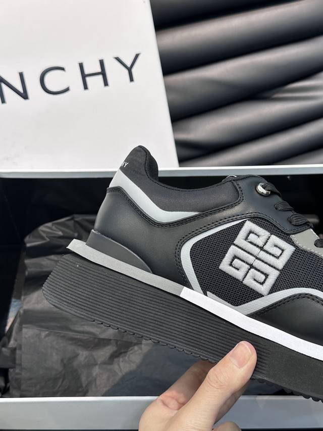 / 出厂价 实价 纪梵希-全新GIV 1男士厚底增高休闲运动鞋,鞋面高品质小牛皮拼接透气网面制成!上脚效果帅气有型,增高5CM,提升气场,鞋身撞色拼接设计,饰有4G