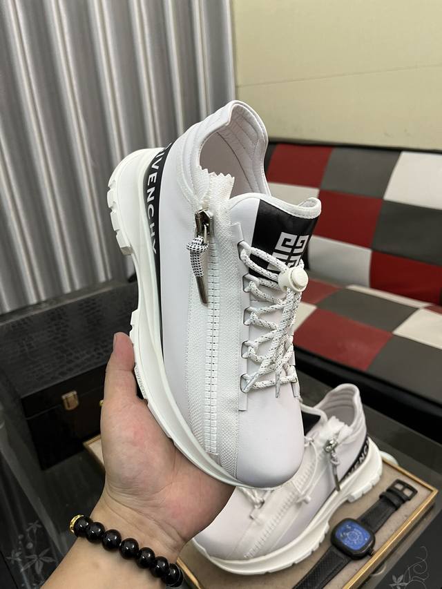 出厂价: Gv *Y~纪梵希.全新giv 1男士厚底增高休闲运动鞋,鞋面高品质小牛皮拼接透气网面制成!上脚效果帅气有型,增高4Cm,提升气场,鞋身撞色拼接设计,