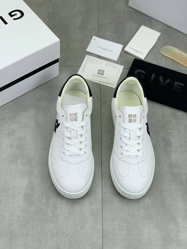 纪梵希 Givenchy 情侣款低帮 标准码:35-44; 34 45 46 47可以定做 等级:官网同款 原单品质材料:原版小牛皮,搭配原版水染牛皮内里牛皮乳胶鞋垫 ,原版防滑耐磨大底款式类别:休闲运动 板鞋 系带款小白鞋系列 年轻时尚 欧美潮流 韩版风格 随意搭配 脚感舒适 多款颜色可选 顶级高端全套包装