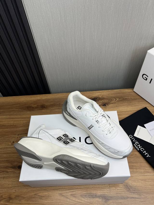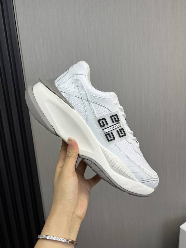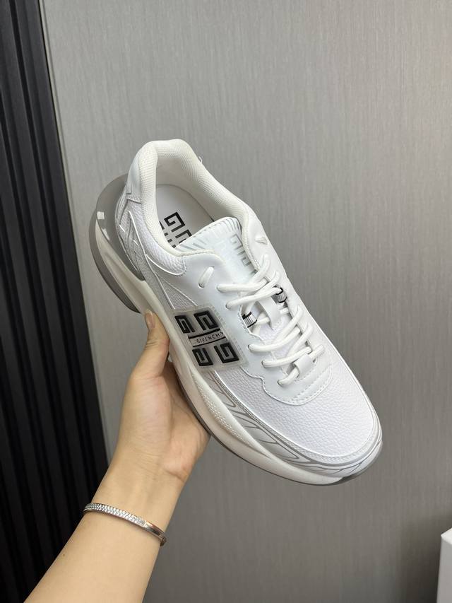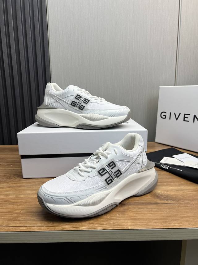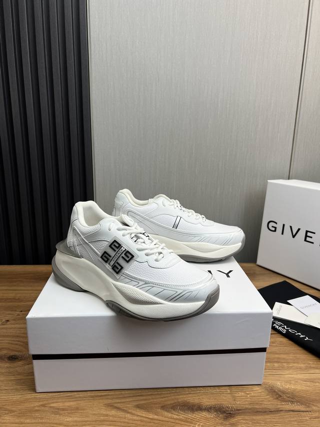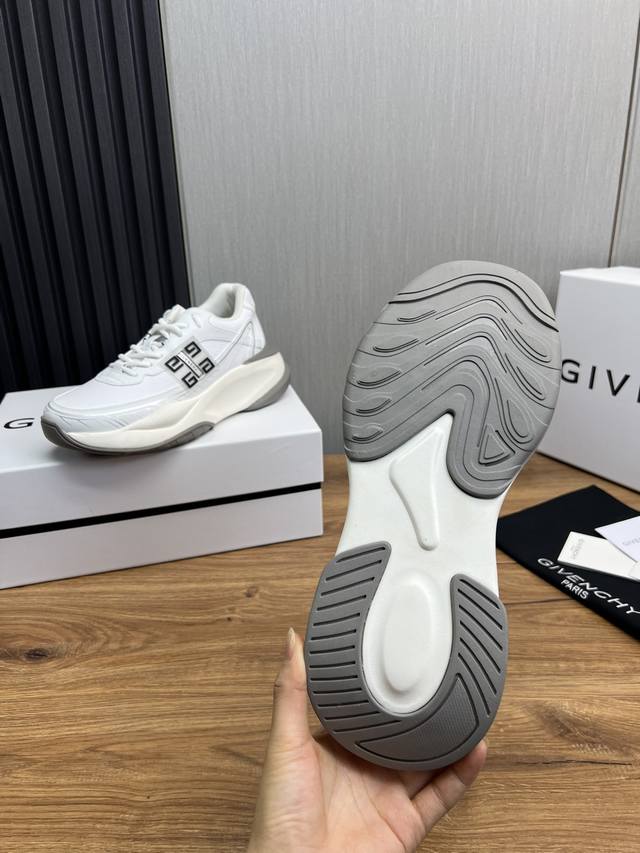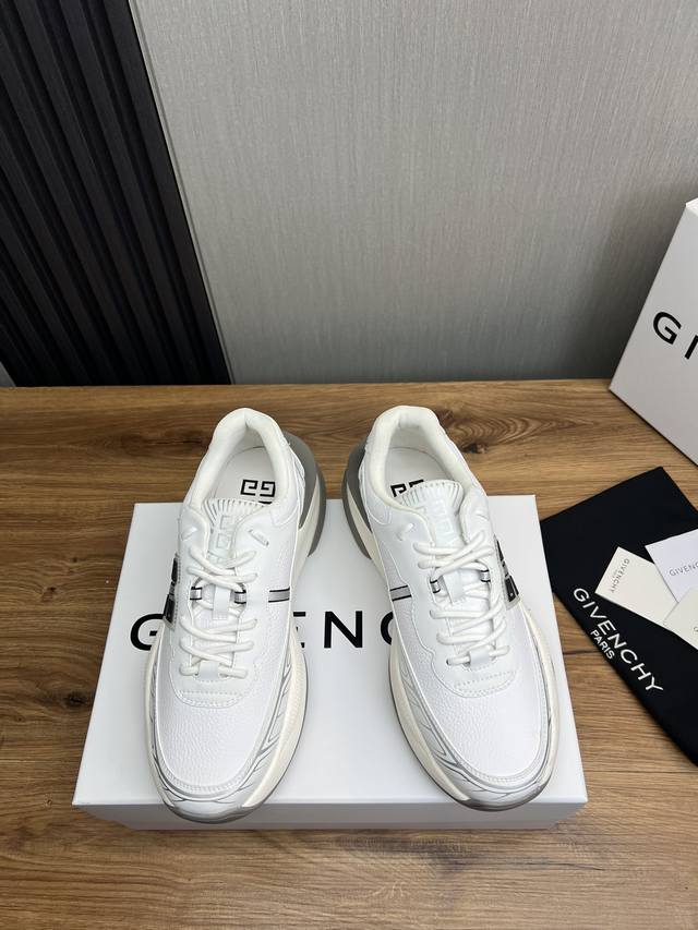Gv *Y~纪梵希.全新giv 1男士厚底增高休闲运动鞋,鞋面高品质小牛皮拼接透气布面制成!上脚效果帅气有型,增高4Cm,提升气场,鞋身撞色拼接设计,饰有4G Logo标志和立体givenchy标志。轻质tpu发泡大底,脚感轻便舒适!
