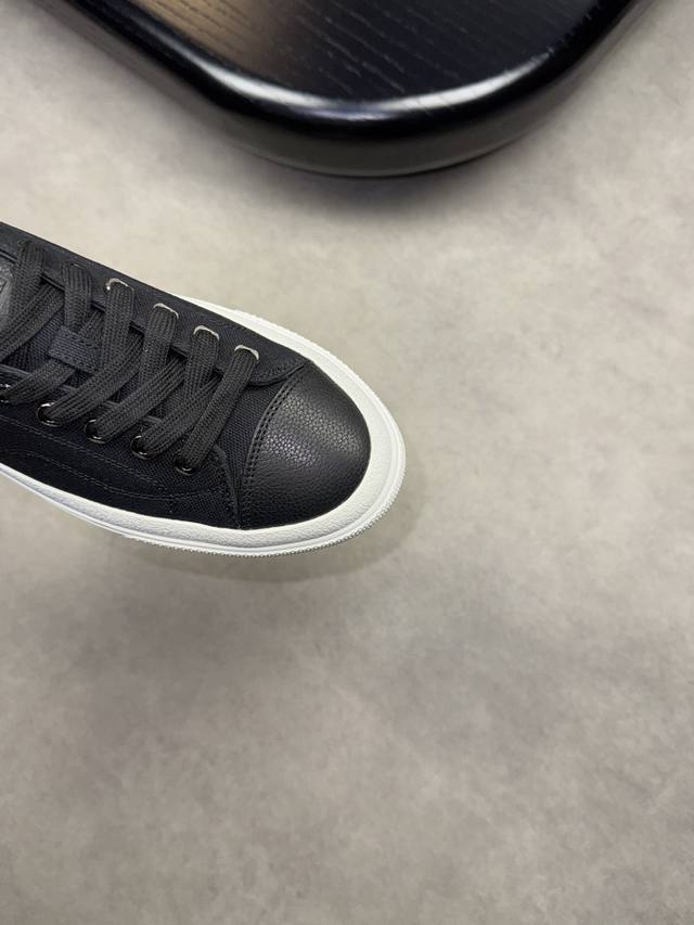 -鞋面:纳帕小牛皮、品牌帆布布匹、鞋身丝印品牌图腾、鞋舌空压品牌图腾