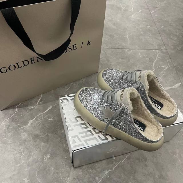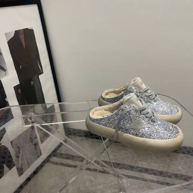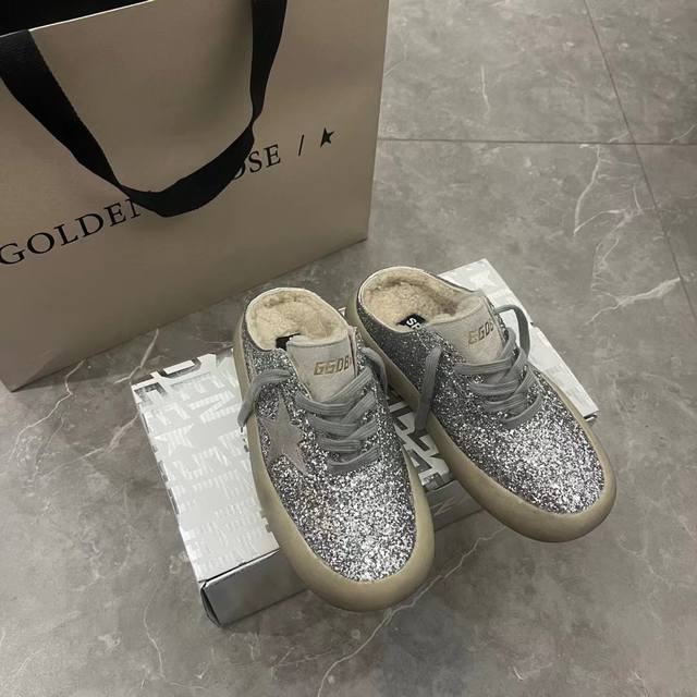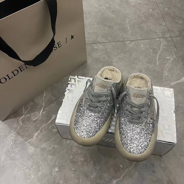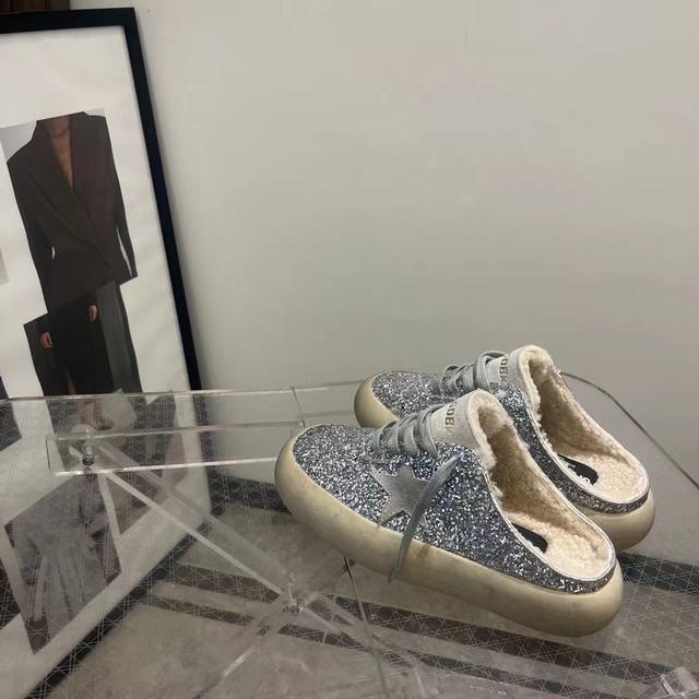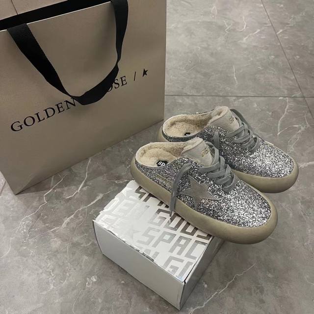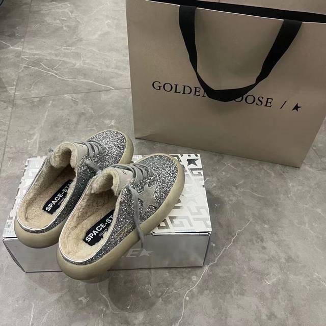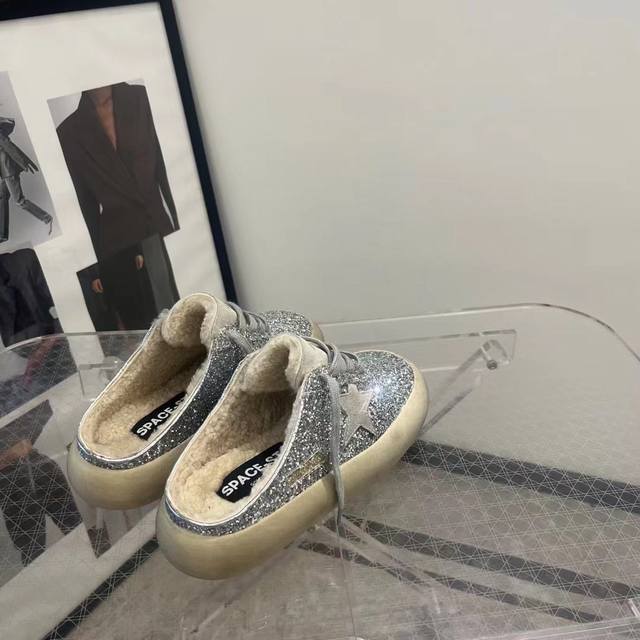 银色半拖羊毛里面包鞋顶级高版本.Ggdb Space Star新款厚底面包鞋羊毛里半拖银色小脏鞋golden Gse Deluxe Brand Super Tar