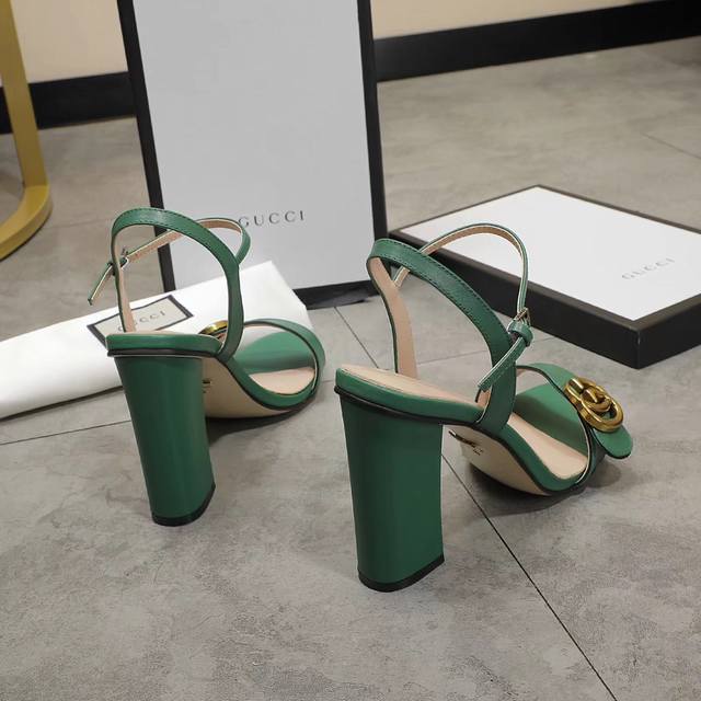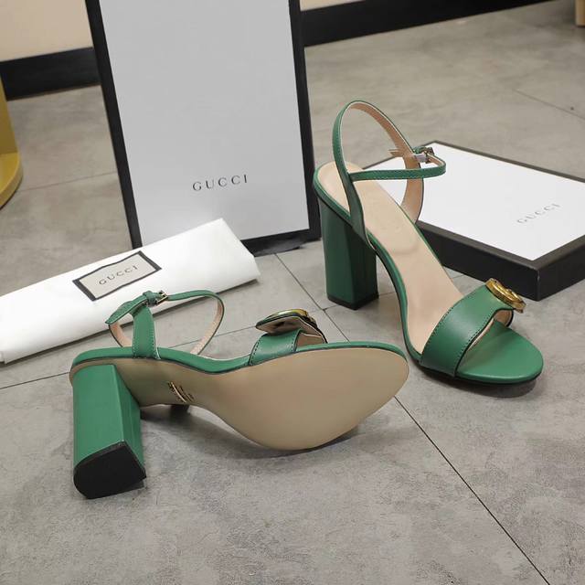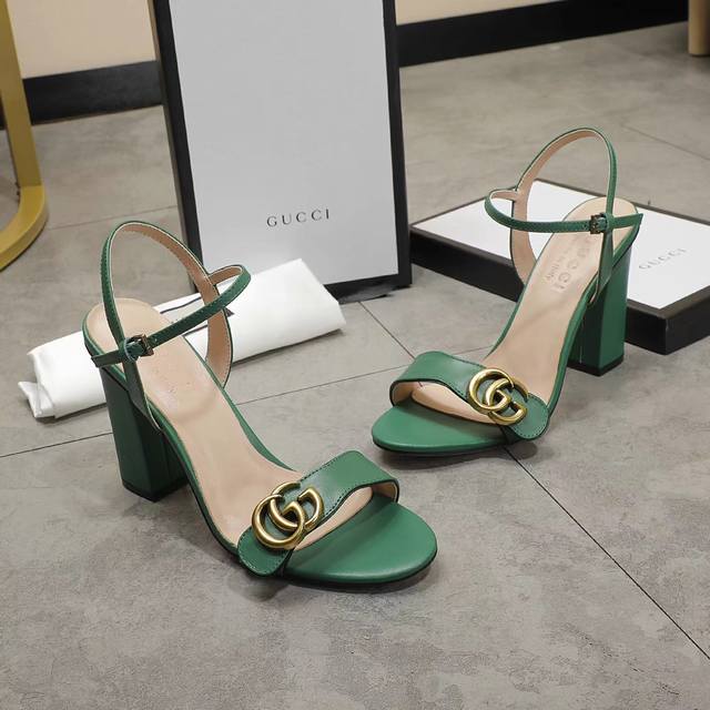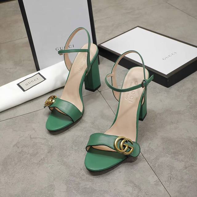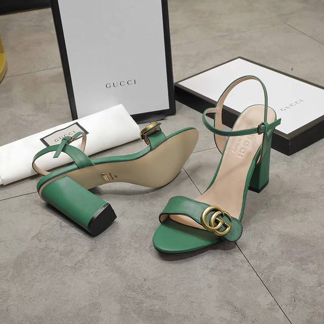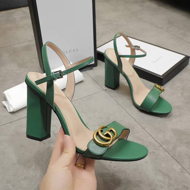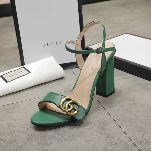 上新款了古奇10Cm跟凉鞋、出货了: 进口小牛皮:、颜色、黑色、绿色、咖啡色、米白色、洒红色、粉色、浅兰色、白色、金色、银色、灰色、杏色 进囗羊京颜色、黑色、墨