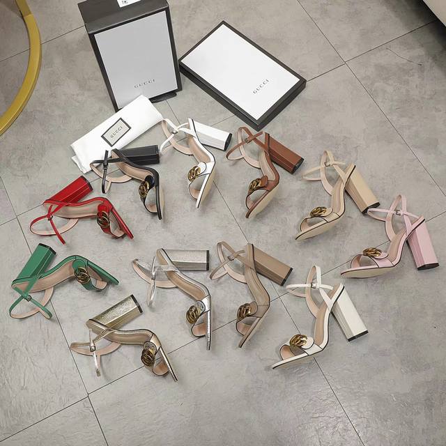 上新款了古奇10Cm跟凉鞋、出货了: 进口小牛皮:、颜色、黑色、绿色、咖啡色、米白色、洒红色、粉色、浅兰色、白色、金色、银色、灰色、杏色 进囗羊京颜色、黑色、墨