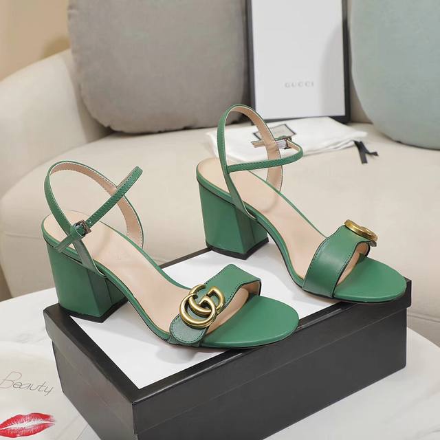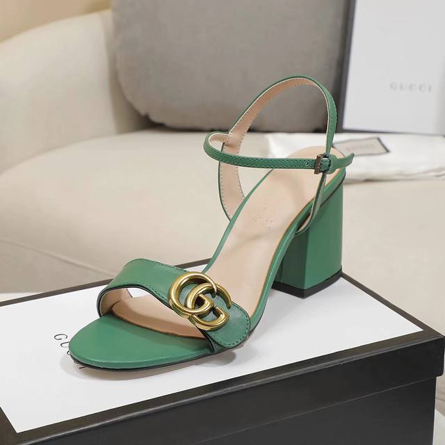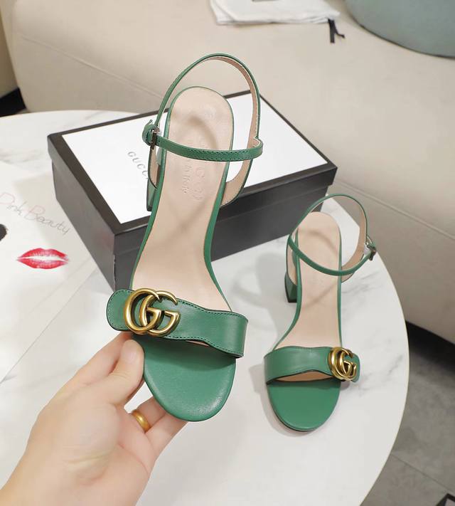 上新款了古奇7 5Cm跟凉鞋、出货了: 进口小牛皮:、颜色、黑色、绿色、咖啡色、米白色、洒红色、粉色、浅兰色、白色、金色、银色、灰色、杏色 进囗羊京颜色、黑色、