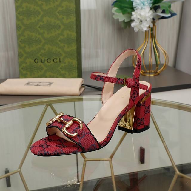 Gucci 23Ss女士系扣高跟凉鞋...