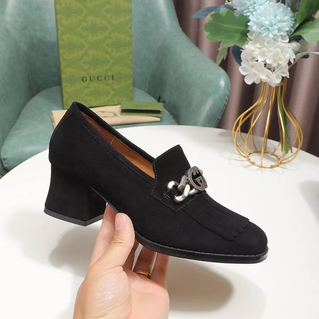 / 上新款啦古奇5.5公分中跟单鞋出货了 2个颜色扣子银色、金色、进口小牛皮:个颜色、黑色、白色、酒红色、 金色水泡纹 进口羊猄、2个颜色、黑色、墨绿、 内裡:进口