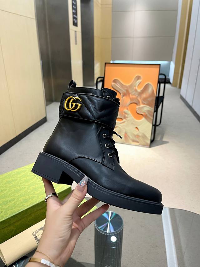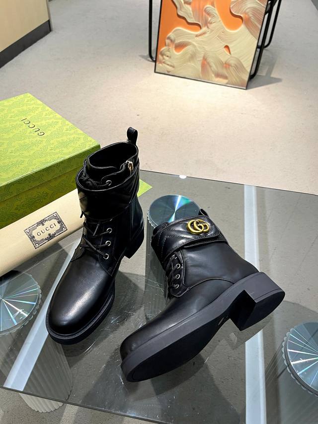全皮面 ! 布面 !高版本Gucci秋冬新款女士双G踝靴马丁靴