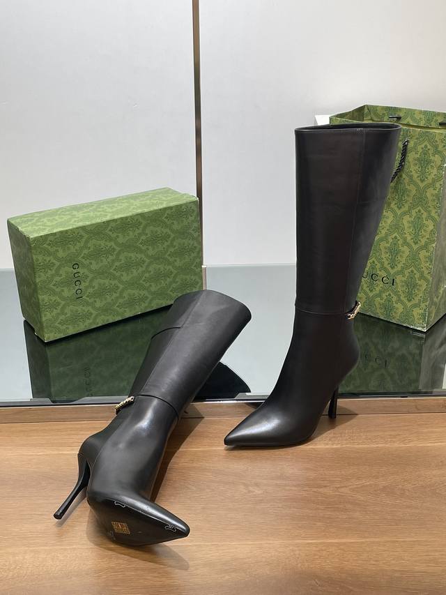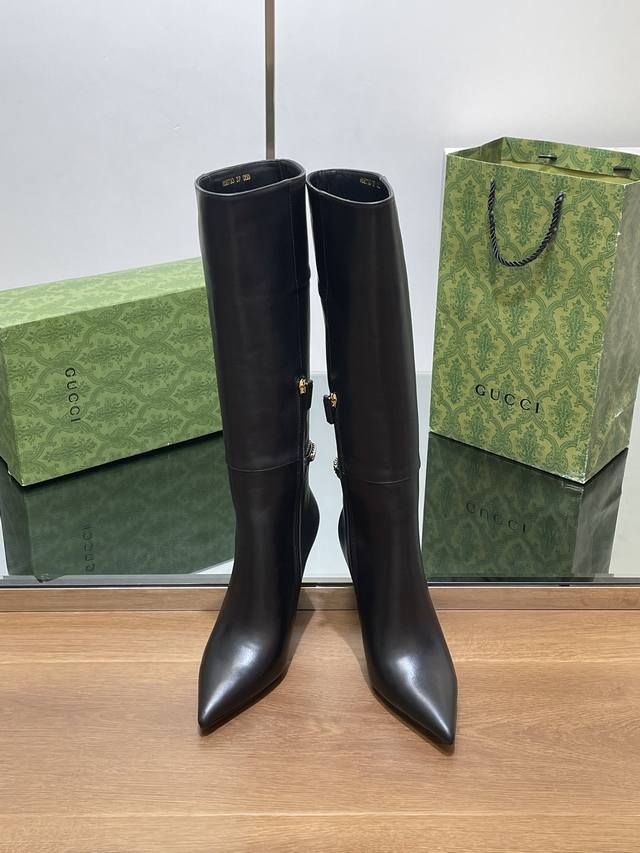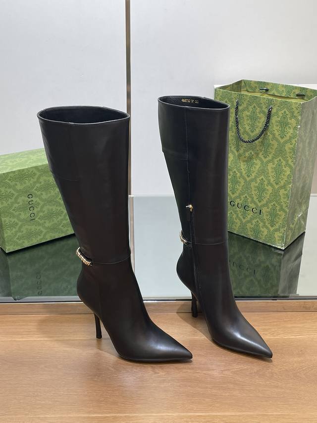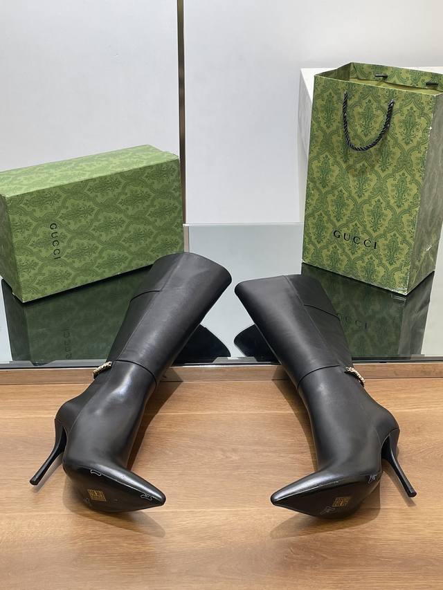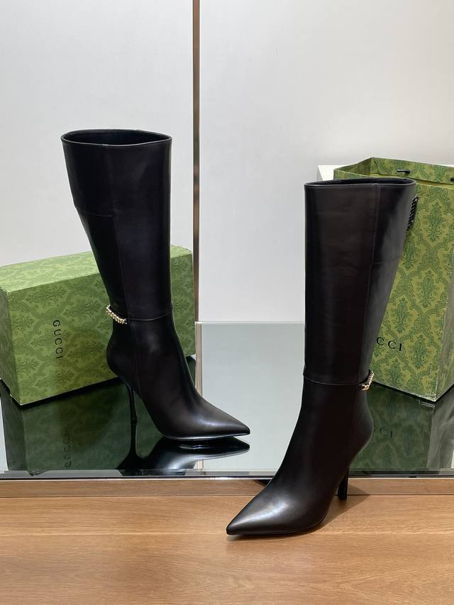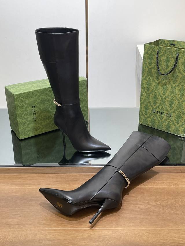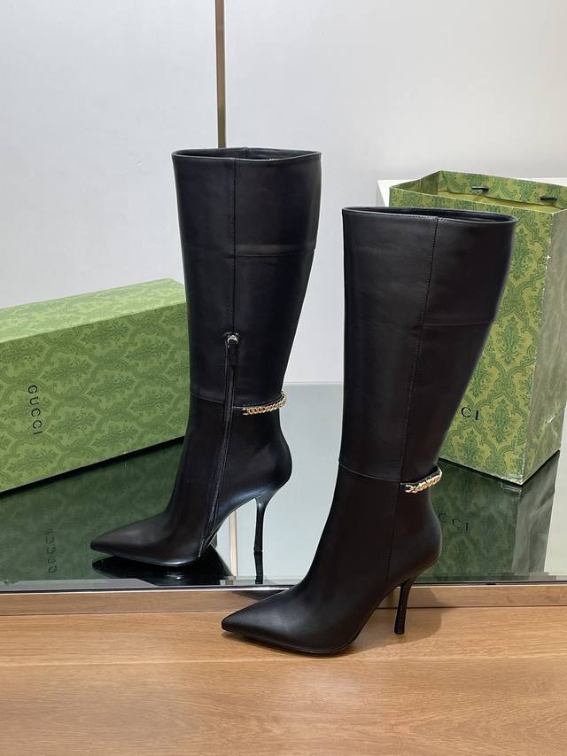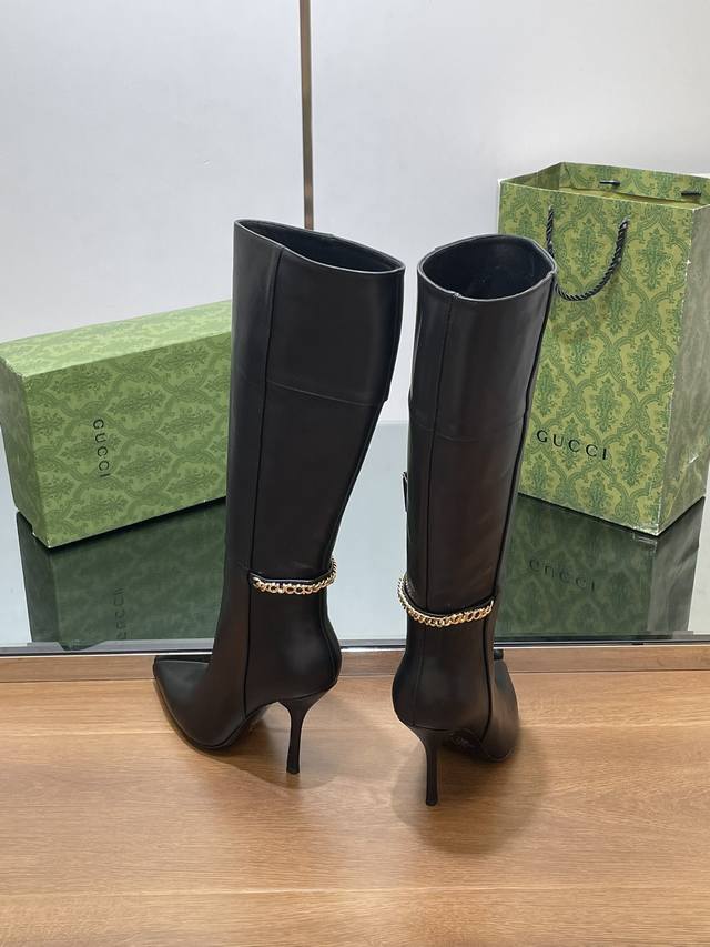 冬季G家新款Gucc字母扣L O G O链条高跟系列女靴尖头及膝靴高筒靴长靴 出厂价p