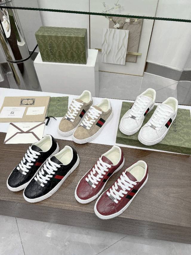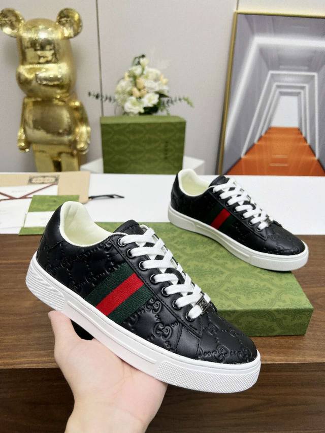 Gucci 古奇男女同款小白鞋系列。面料:压花, 牛皮内裡,牛皮垫脚,女35-41 男39-45