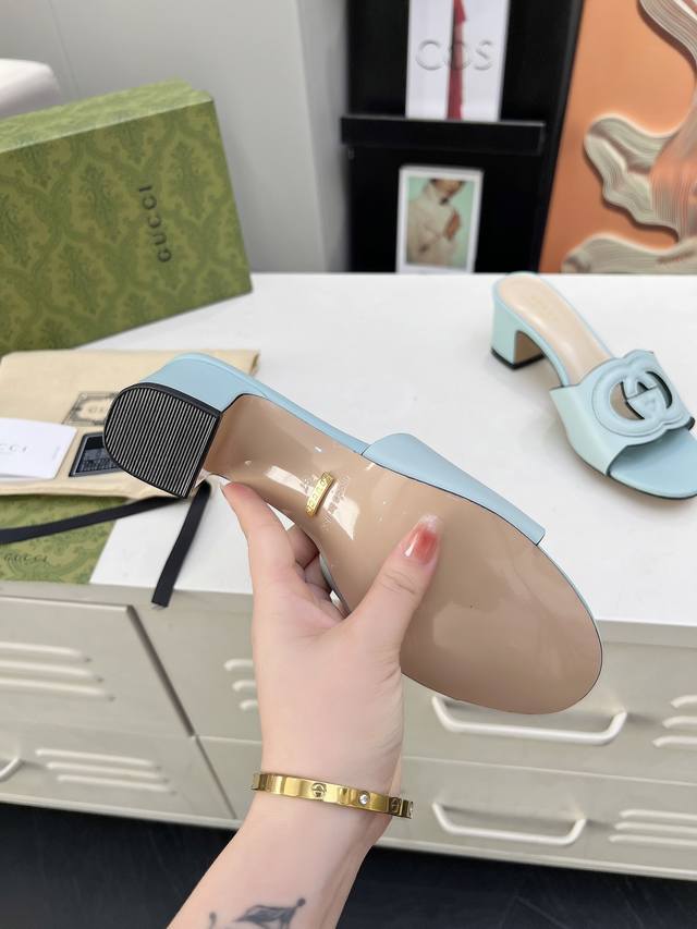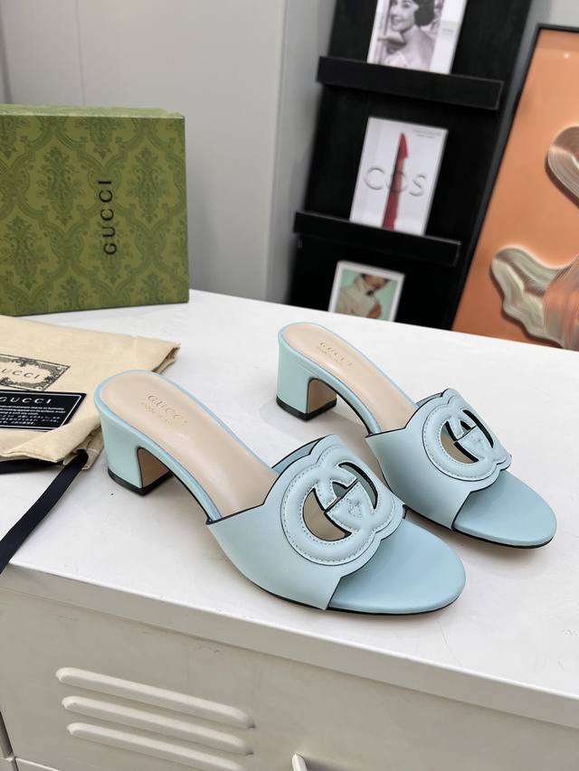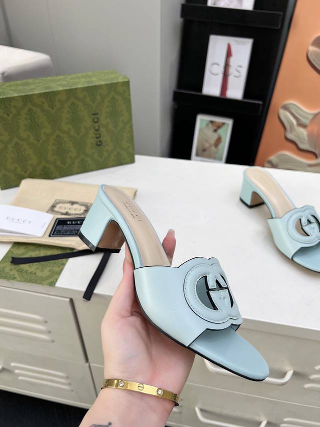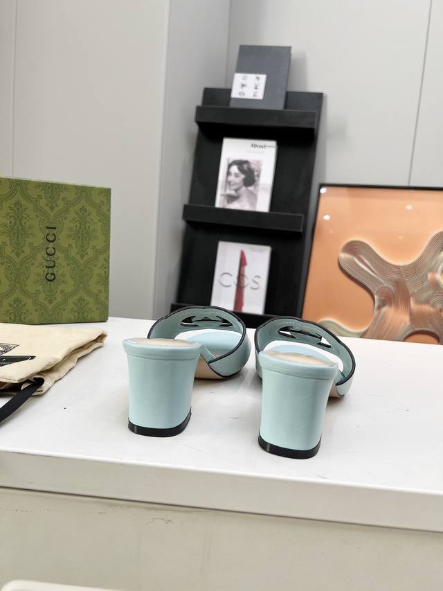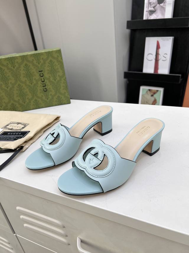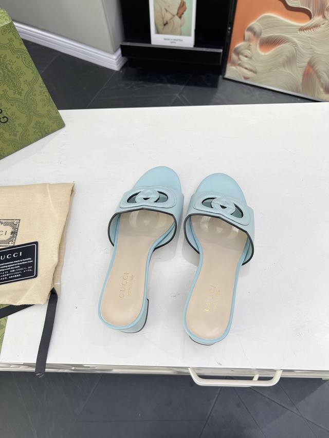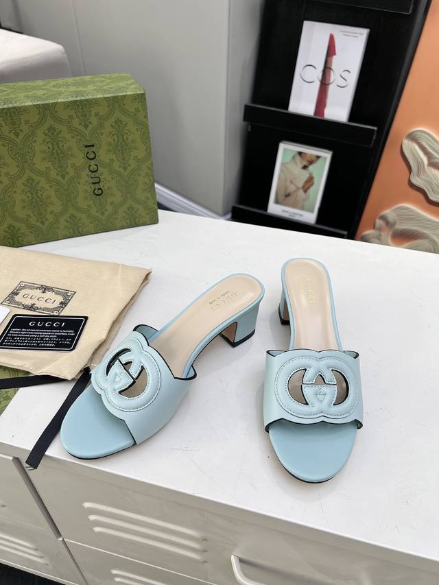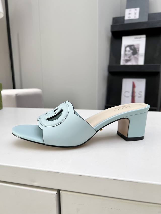 古奇 官网最新款凉鞋同步上市,受20世纪70年代经典设计的影响,这款中跟牛皮凉鞋上的联锁g饰以超大镂空细节。跟高5.5厘米。
