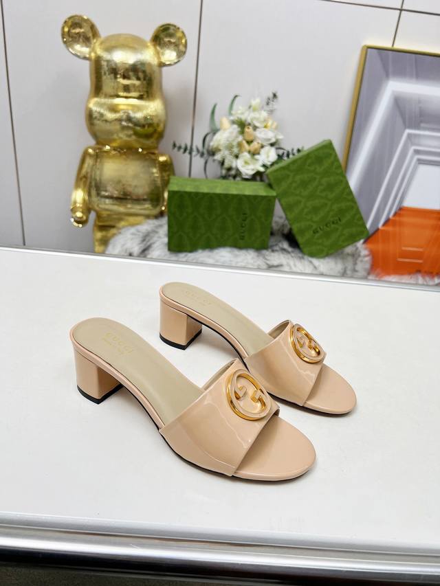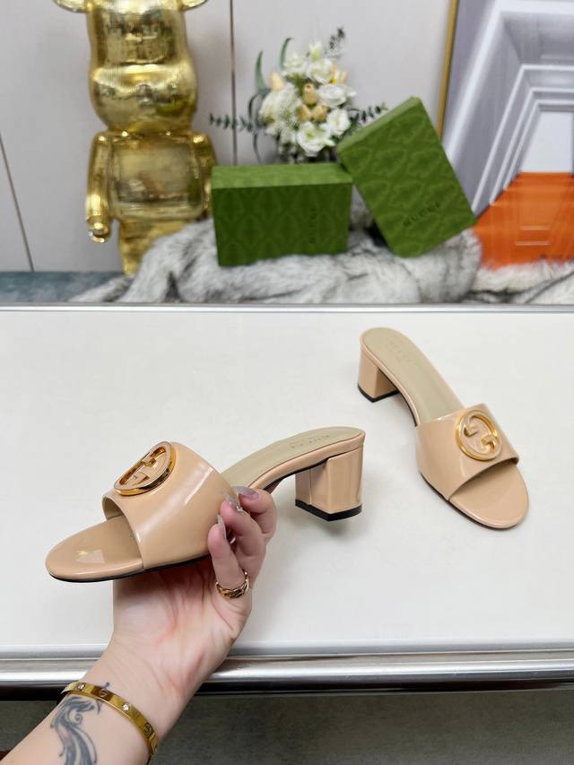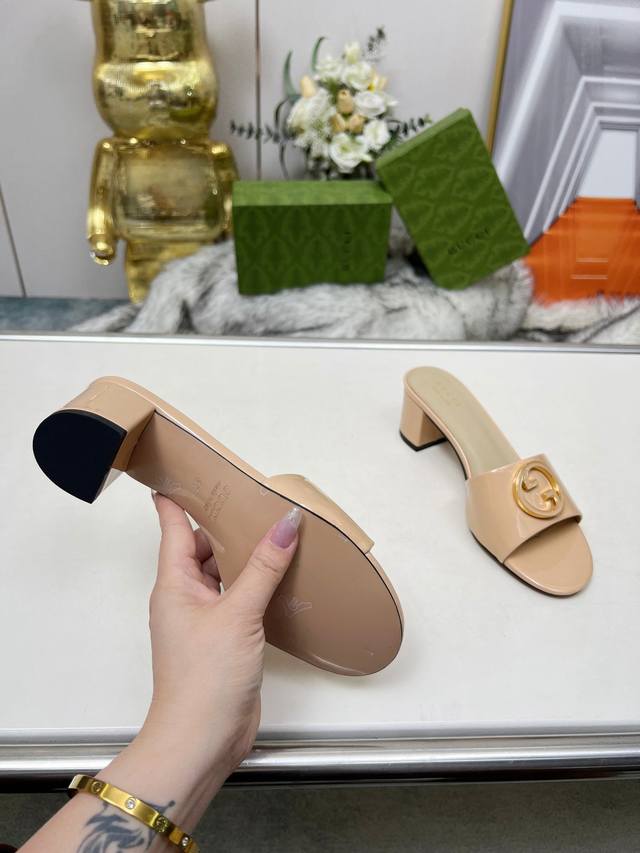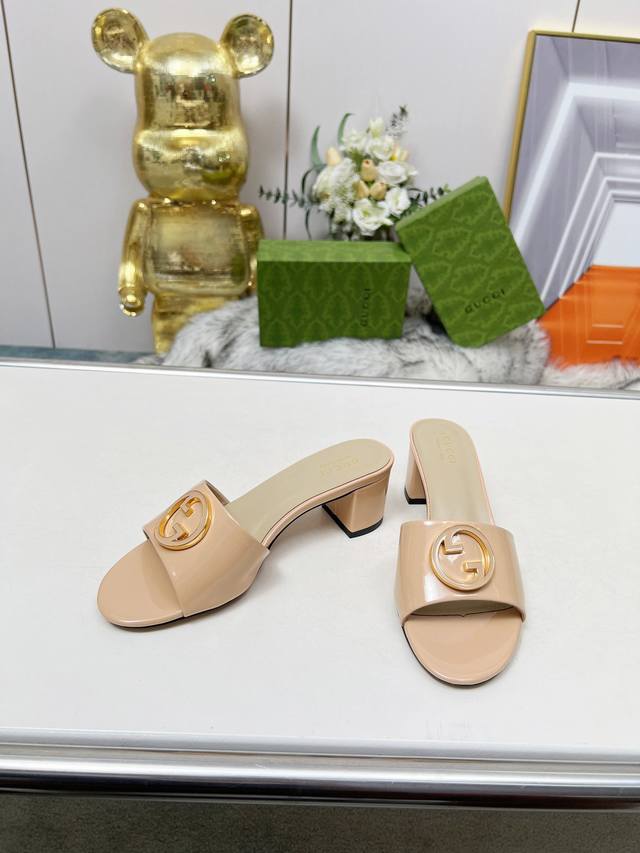 gucci 古驰5春夏新款双G饰扣圆头中跟粗跟拖鞋,这G家系列拖鞋太好看了,高端必入款~