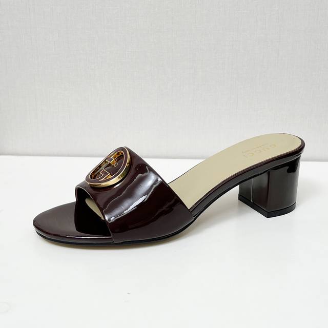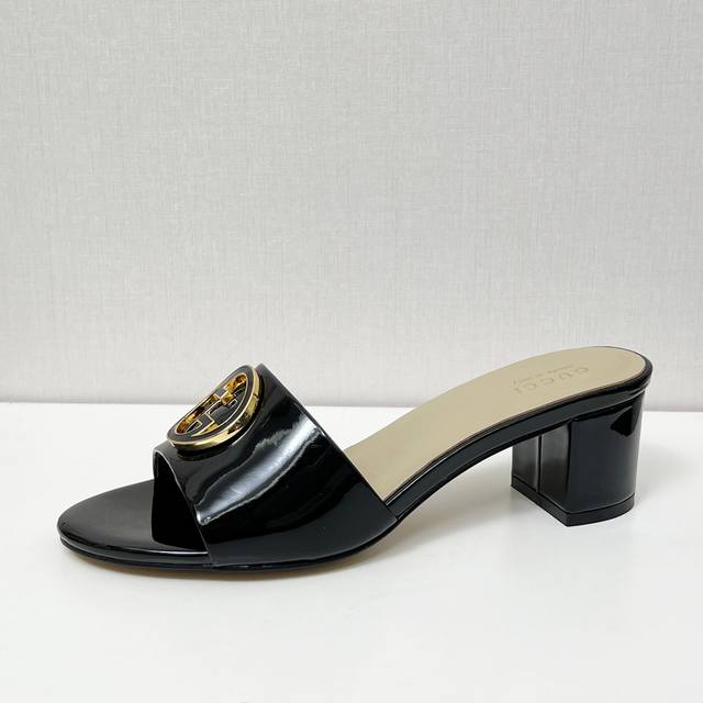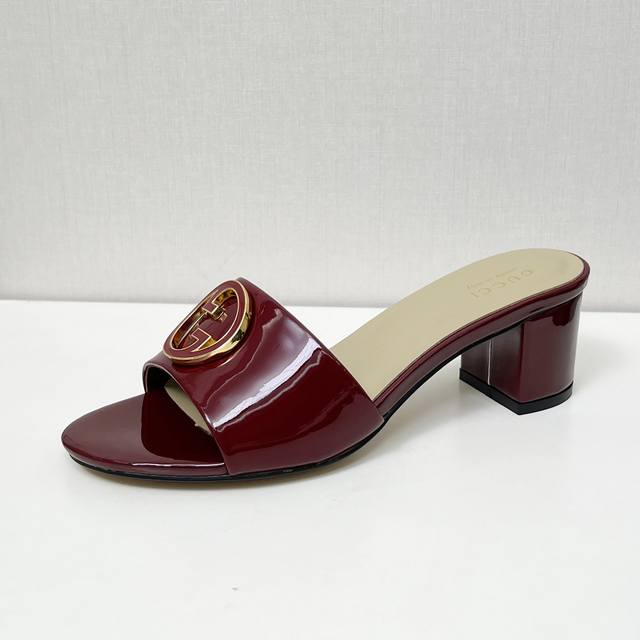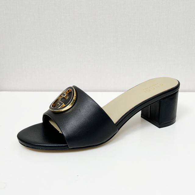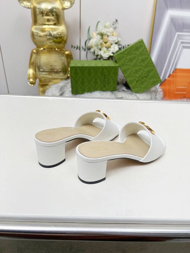 gucci 古驰5春夏新款双G饰扣圆头中跟粗跟拖鞋,这G家系列拖鞋太好看了,高端必入款~