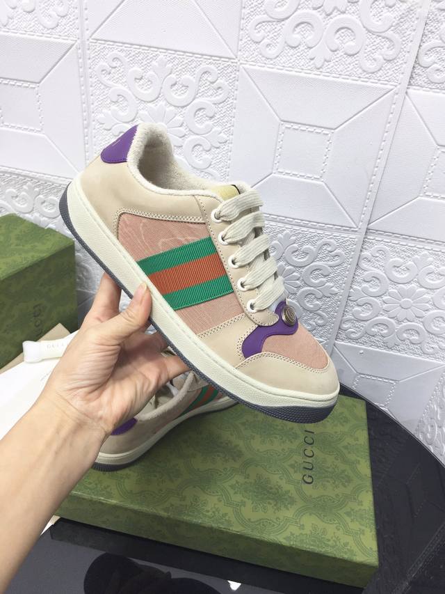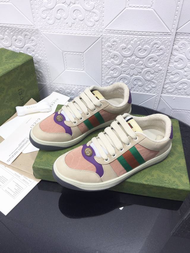 Gucci古驰全新升级后套内里,顶级做旧小脏鞋,Screener 系列饰水晶运动鞋