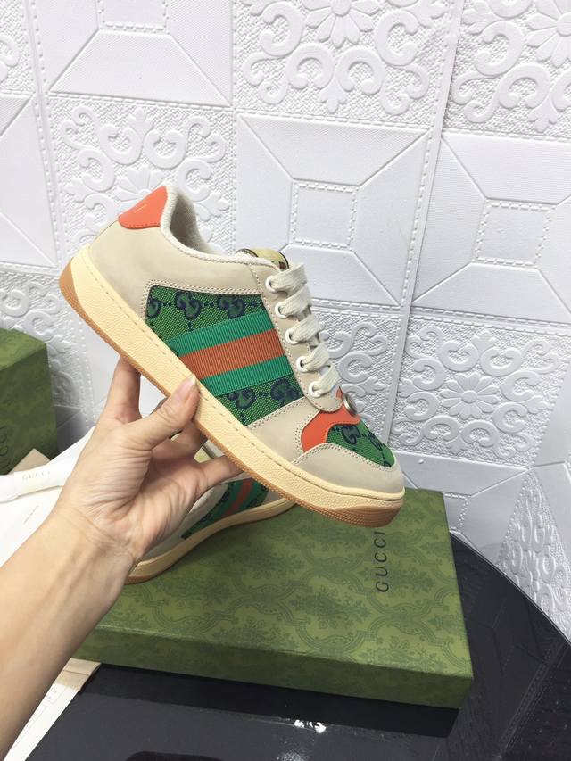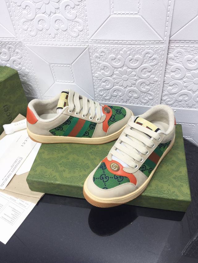 Gucci古驰全新升级后套内里,顶级做旧小脏鞋,Screener 系列饰水晶运动鞋