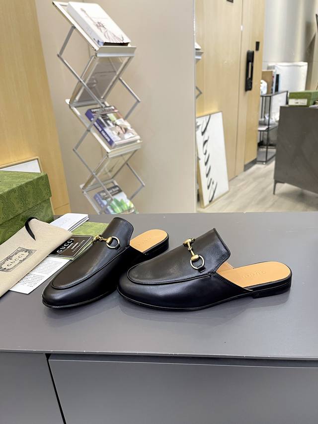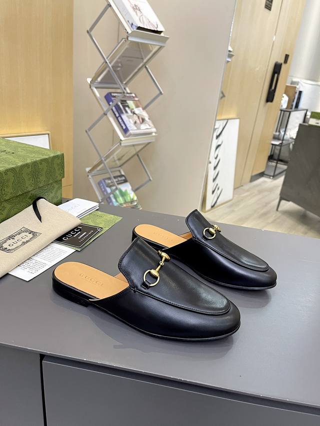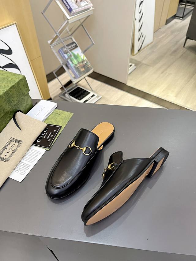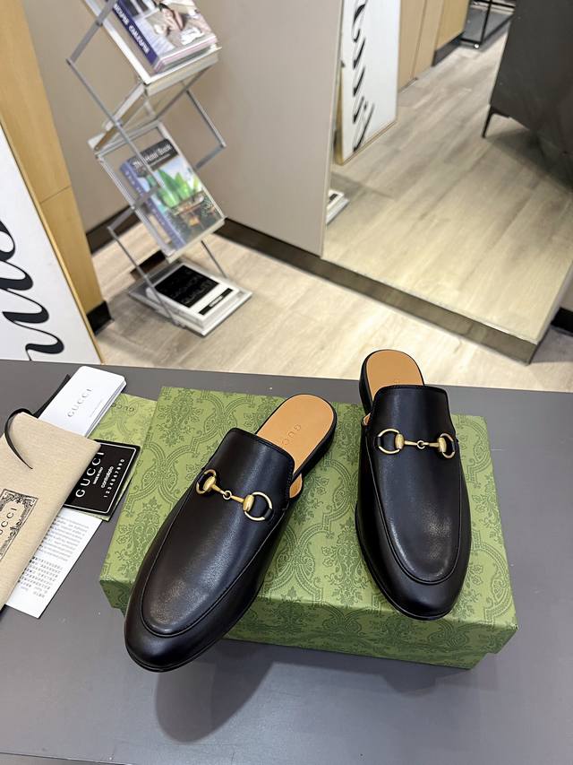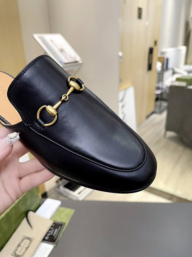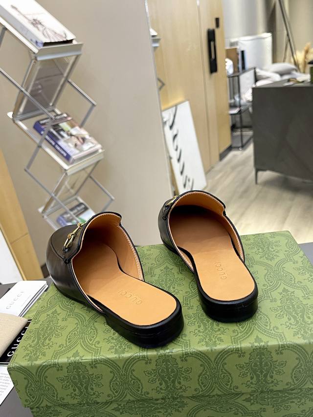 / 出厂价 皮底 Gucci 古奇 光面半拖 ,鞋面材质 皮面,内里垫脚全羊皮,3色入选,系列拖鞋已成为gucci系列的主打单品,别出心裁而充满摩登气息,配饰是对马