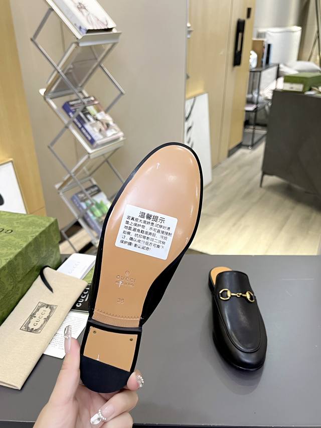 出厂价 皮底 Gucci 古奇 光面半拖 ,鞋面材质 皮面,内里垫脚全羊皮,3色入选,系列拖鞋已成为gucci系列的主打单品,别出心裁而充满摩登气息,配饰是对马衔扣乐福鞋的时尚诠释,早春系列中精致升级。码数35-40,41不退不换