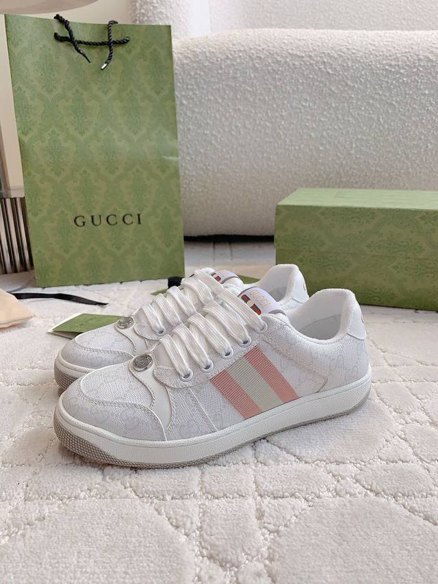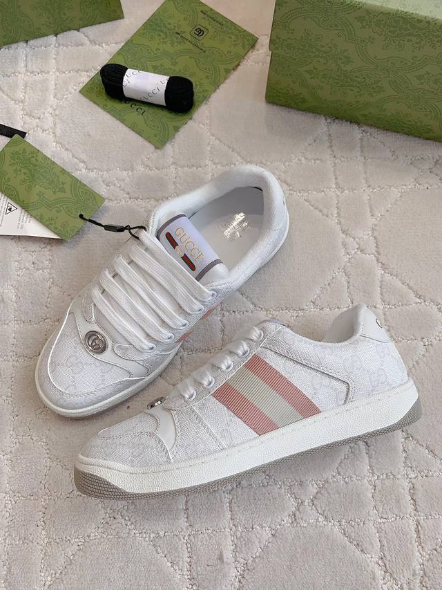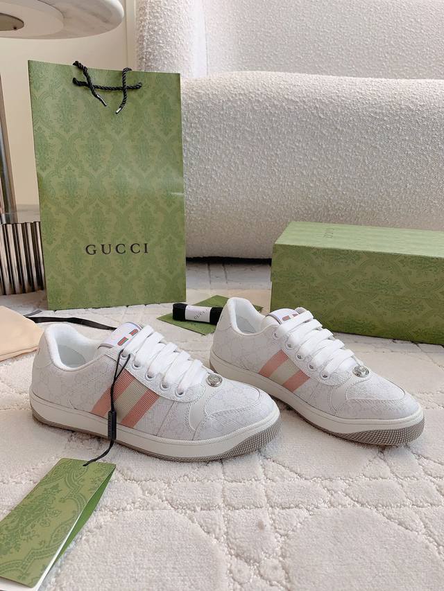 Gucc*经典脏脏鞋,做旧复古学院风Screener 系列脏脏鞋情侣款运动鞋!复古又时髦!被全球无数明星红人宠爱!时髦精都在秀!做旧效果的球鞋超级有调调又酷!暴走舒适度满分!