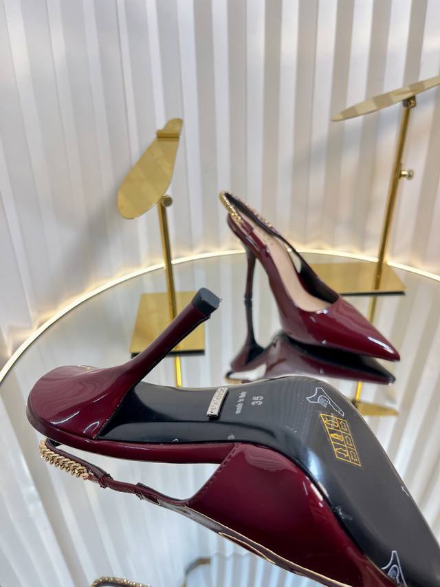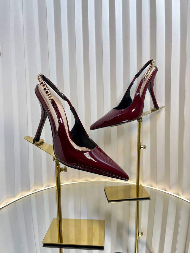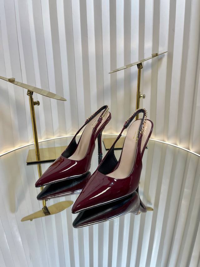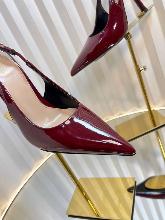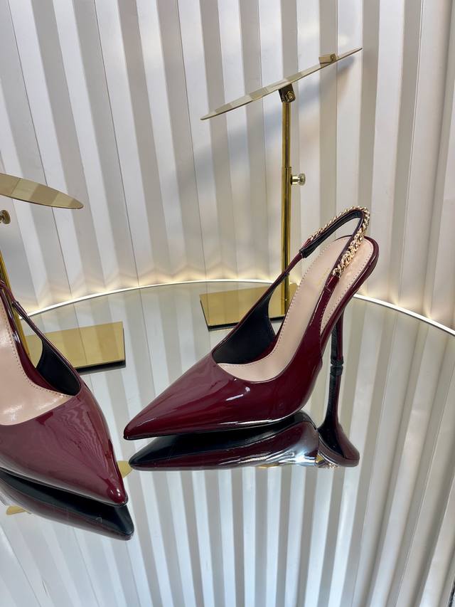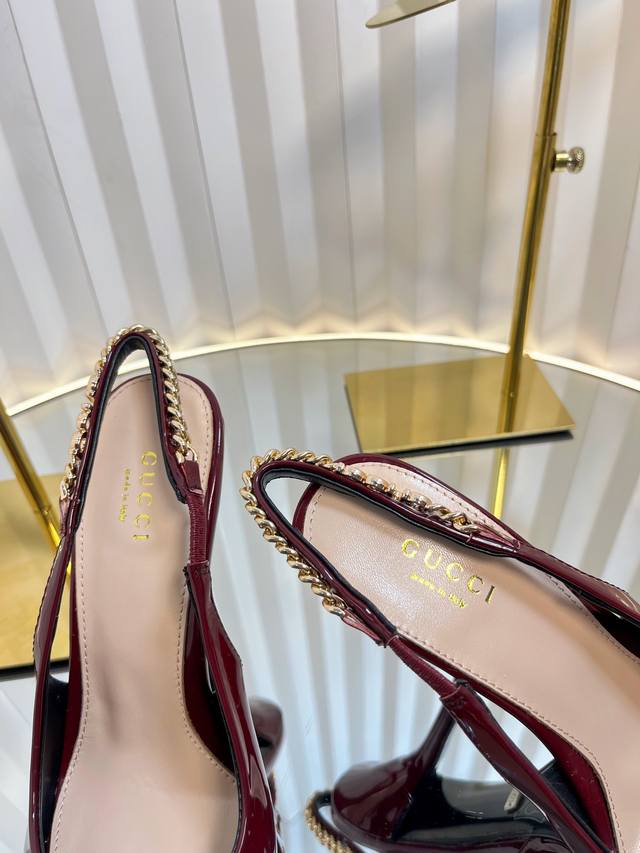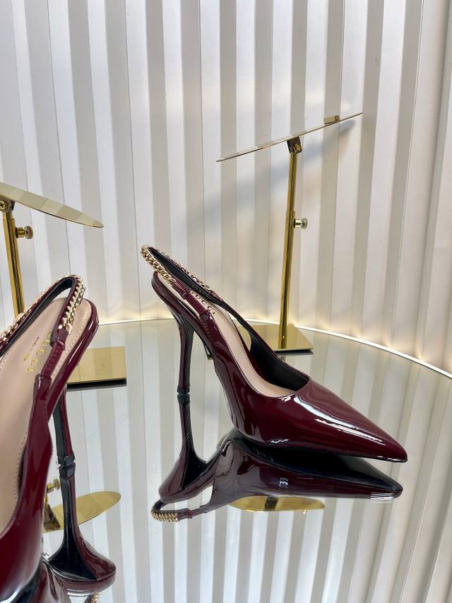 Gucci古驰女士G女士尖头银质感小字母Logo跟鞋火爆全网100周年秀场大爆款无原版不开发购买原版一比一完美复刻 ,黑色内里金属链条