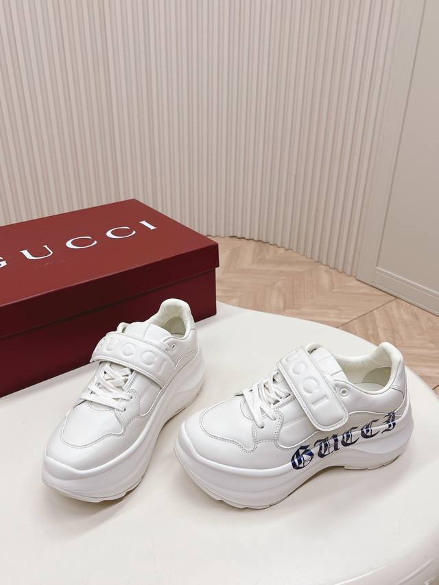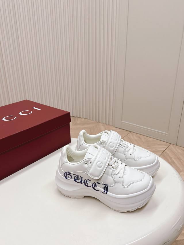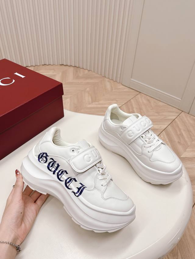 / 出厂 ,高版本! Gucci古驰24新款魔术贴老爹鞋 目前最火的老爹鞋 经典升级加魔术贴 标配了 太绝了 5Cm鞋底,矮个子欢乐鞋牛皮打造 Eva发泡大底,码数