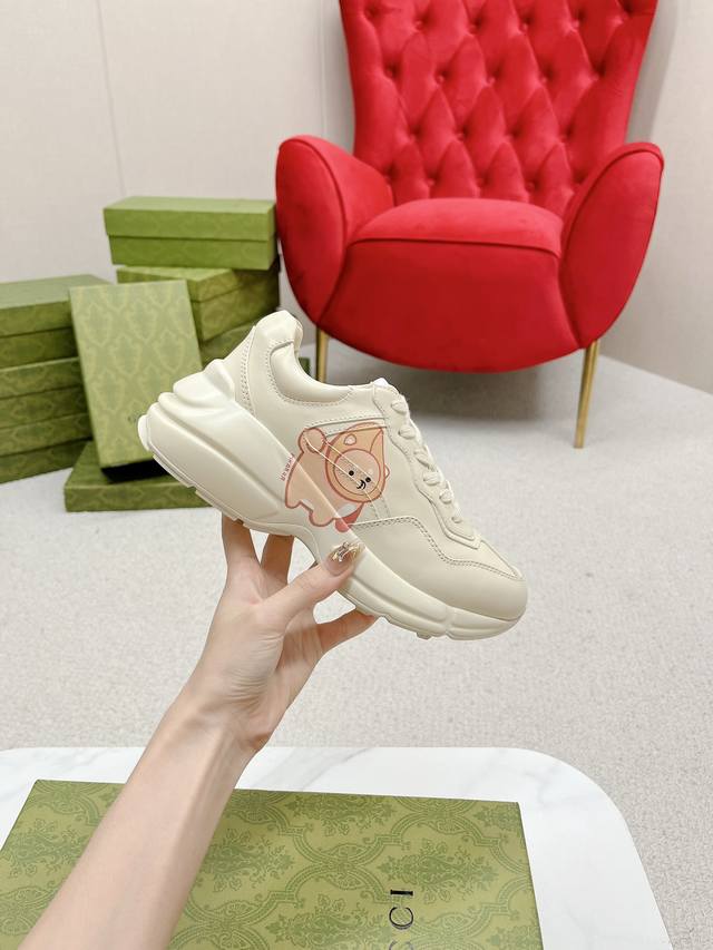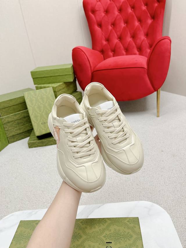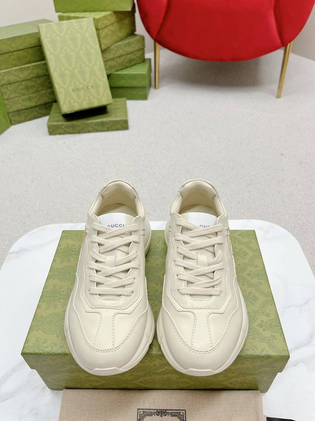出厂: Gucci 古驰 经典休闲男女运动鞋 增高厚底老爹鞋 情侣款 此款老爹鞋在今年仍然还是很受欢迎。对于爱美的人来说,鞋柜里不仅应该有一双白色的鞋子,还应该