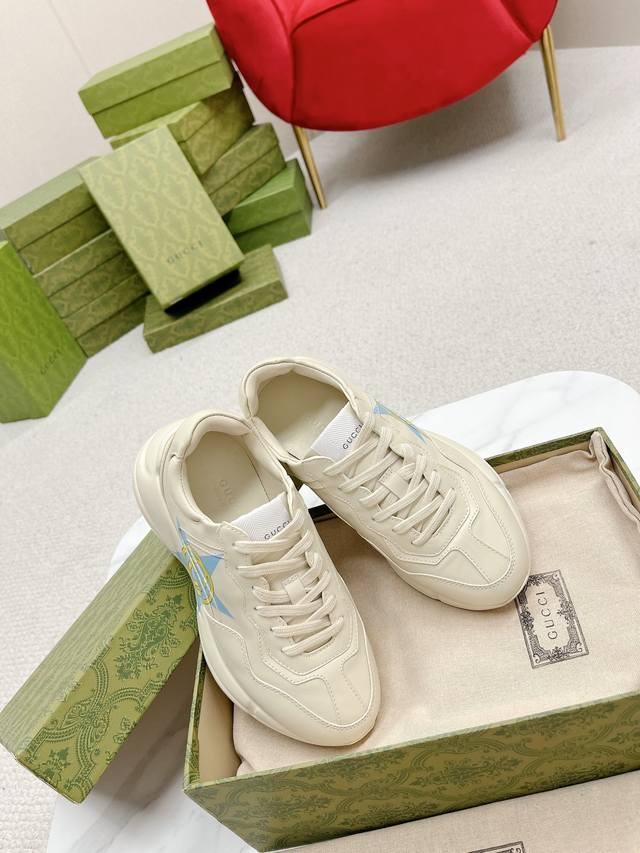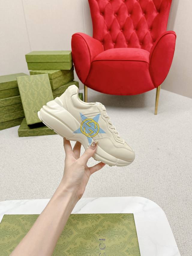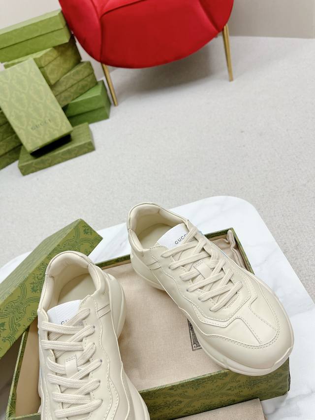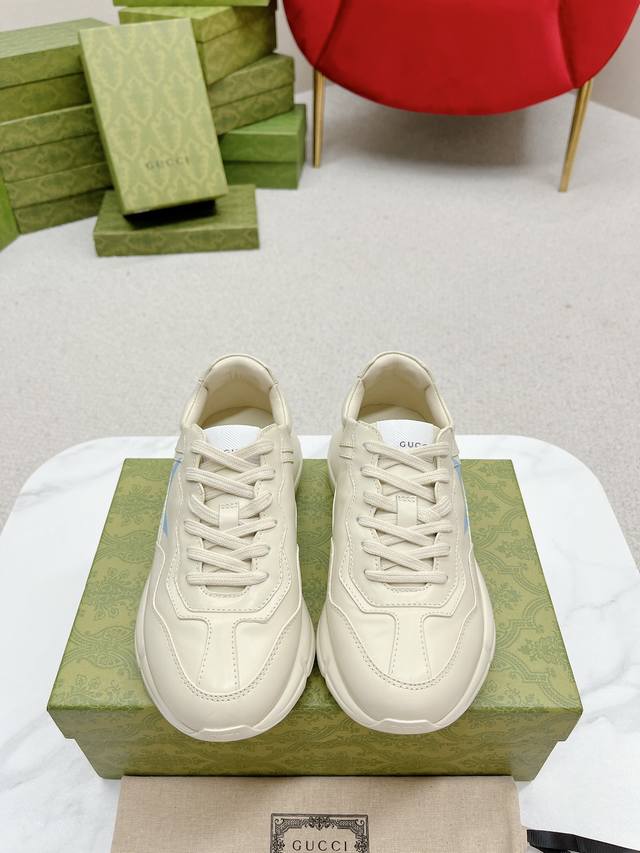 出厂: Gucci 古驰 经典休闲男女运动鞋 增高厚底老爹鞋 情侣款 此款老爹鞋在今年仍然还是很受欢迎。对于爱美的人来说,鞋柜里不仅应该有一双白色的鞋子,还应该