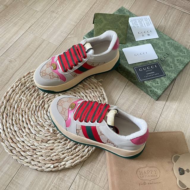 官网同步 独家首发 古驰彩带厚底脏脏鞋