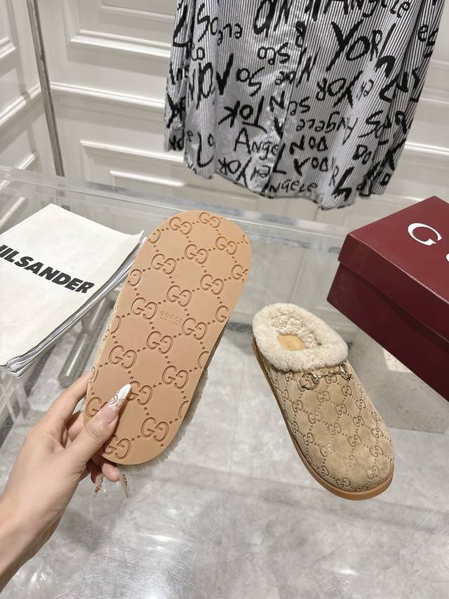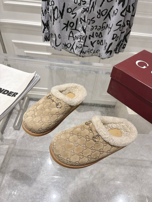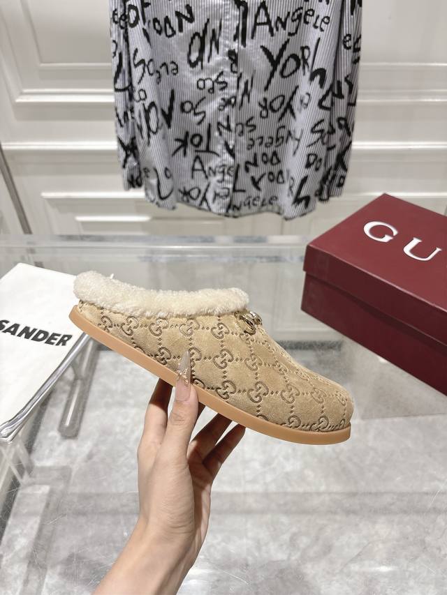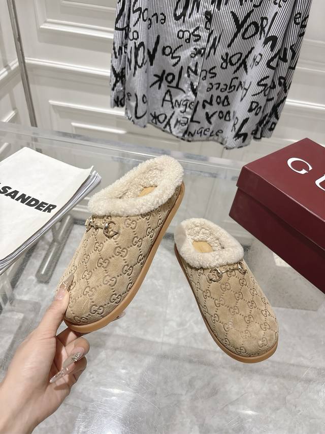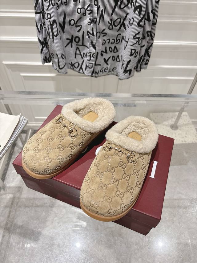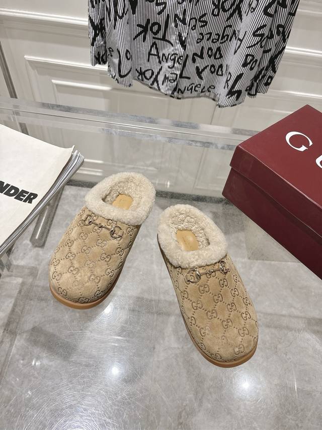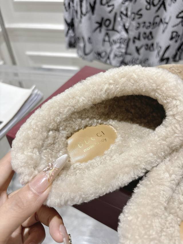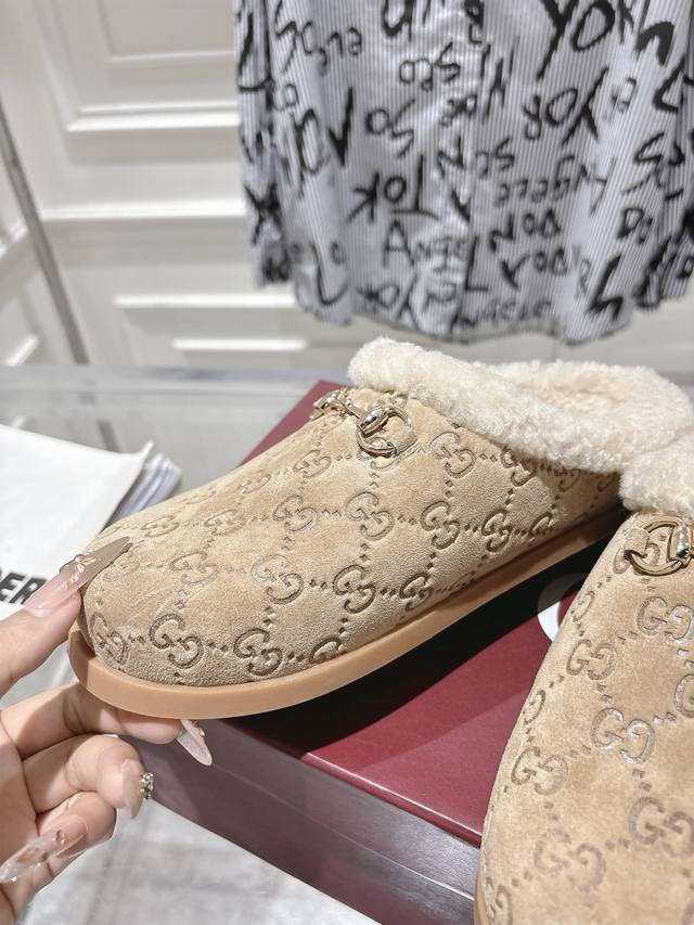 Gucci 女士马衔扣穆勒鞋 羊毛半拖鞋