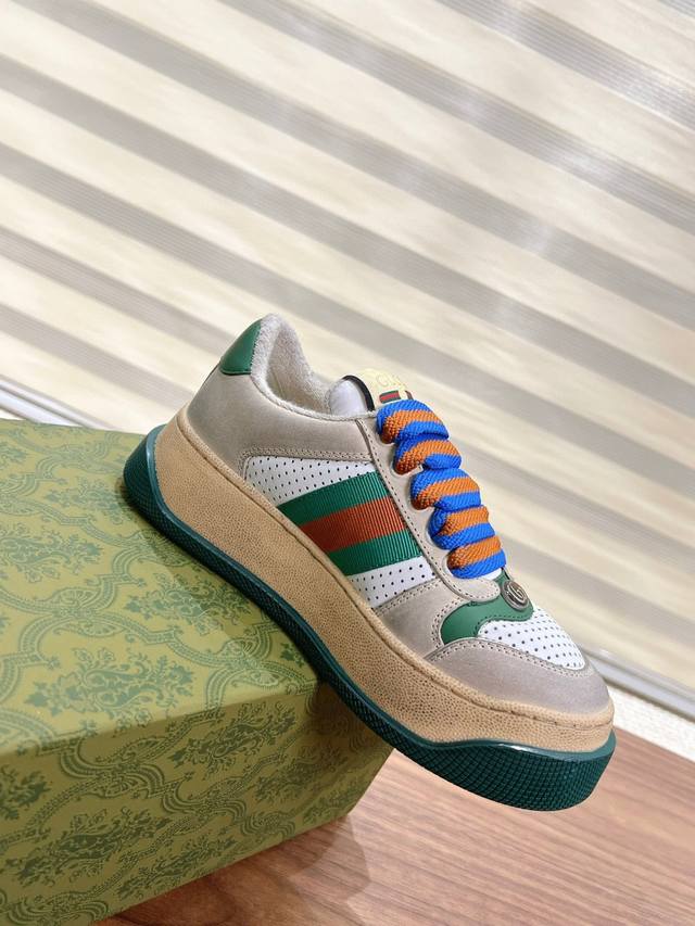 Gucci最新款胖嘟嘟厚底脏脏鞋~~情侣款休闲鞋,