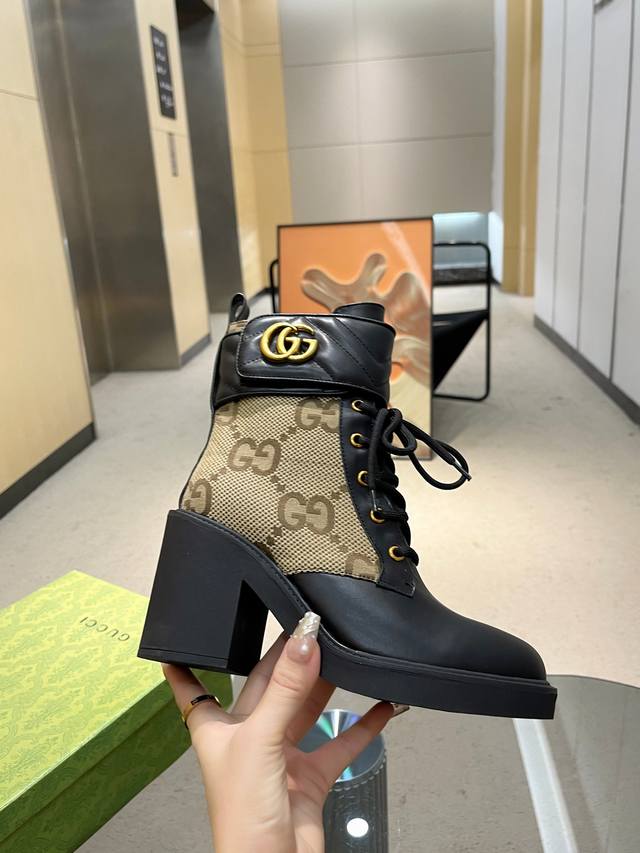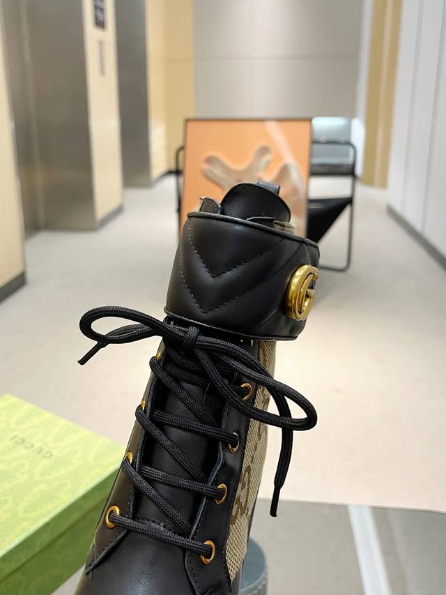 双G布 。牛皮面 高版本Gucci秋冬新款女士马丁靴