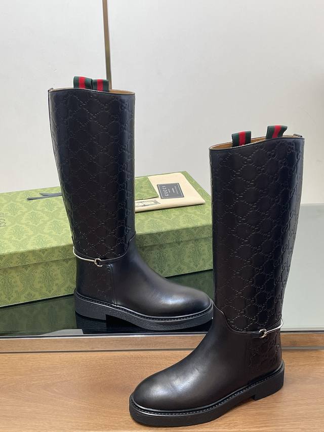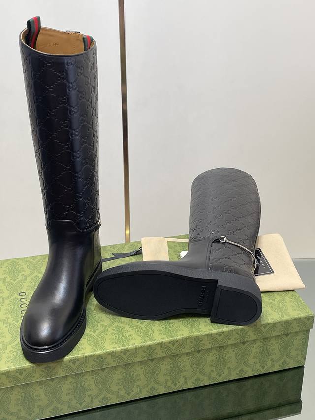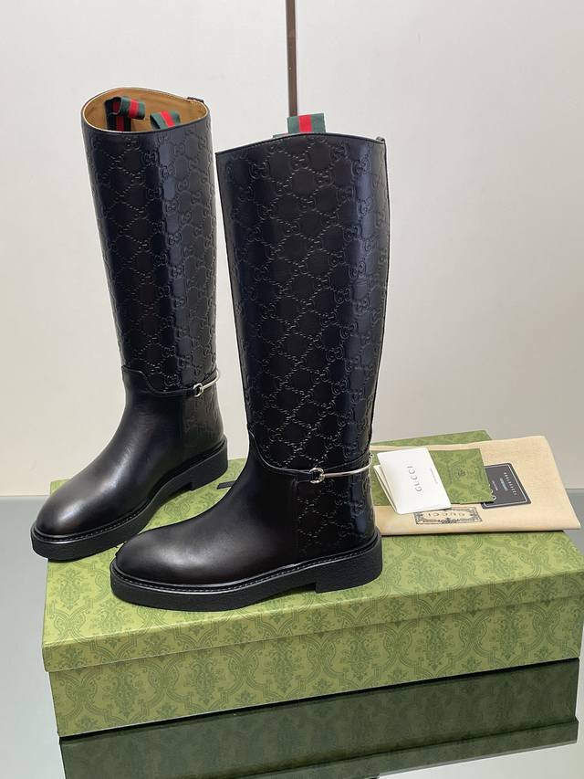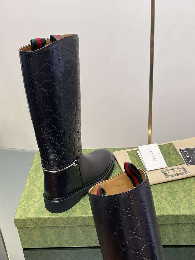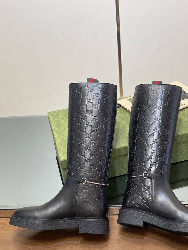 古奇 Gucci 秋冬修长造型马衔扣马术长靴 走秀款过膝靴顶级代购级 年底冲量底价 进口g G压纹小牛皮长靴重工艺所有制作整个做工与原版一致!