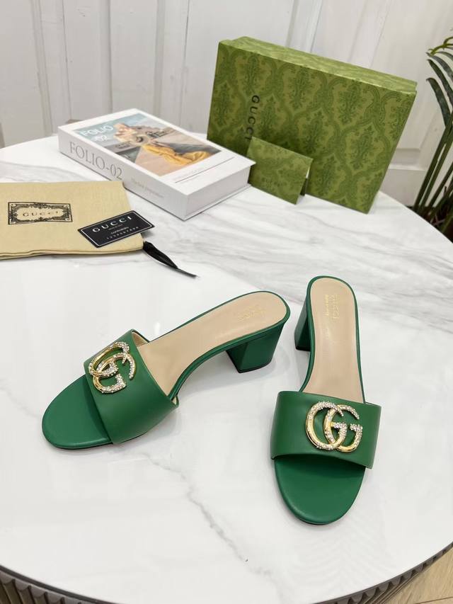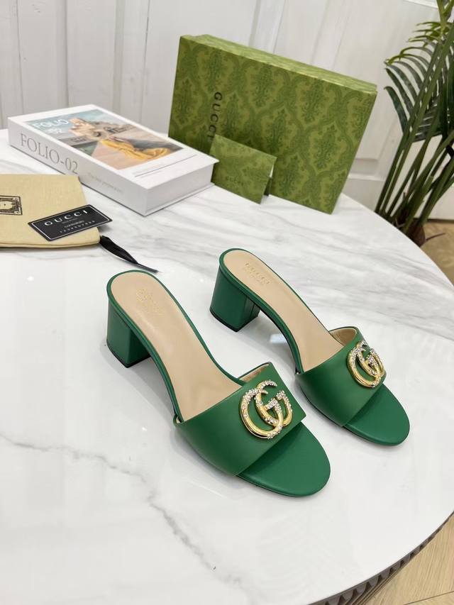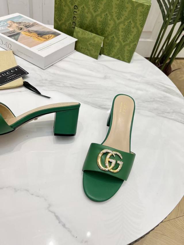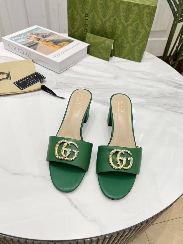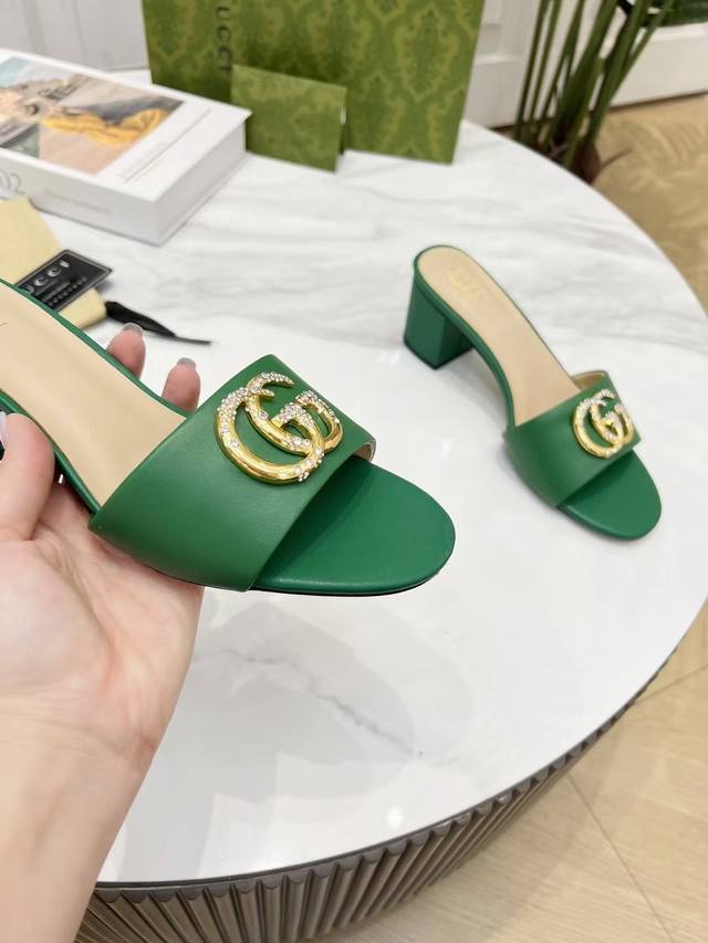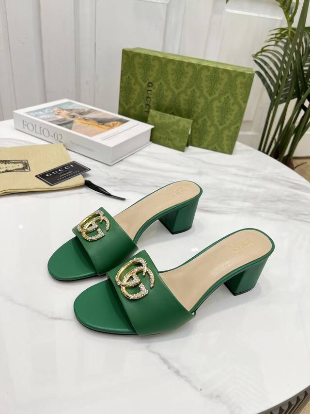古奇2025早春新品上市,双G五金点缀Bling Bling的水钻。2025最耀眼的女主角。跟高6厘米35-43。像胶底P220。真皮底P260