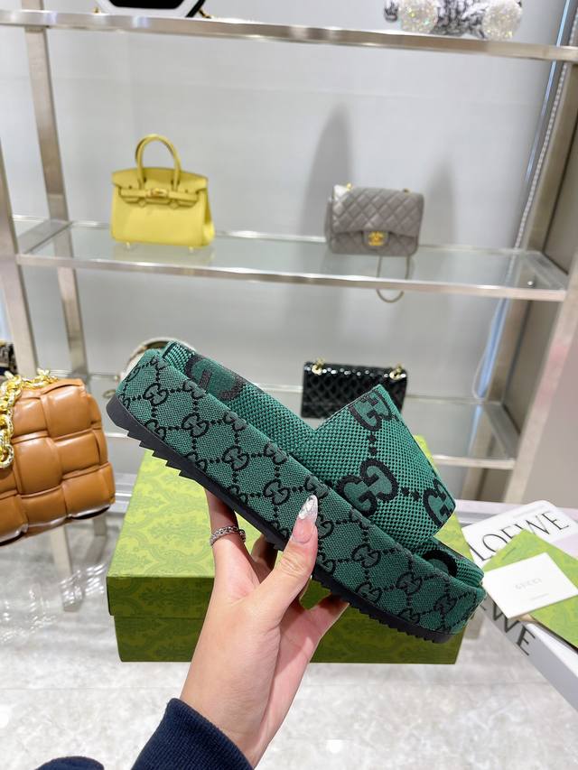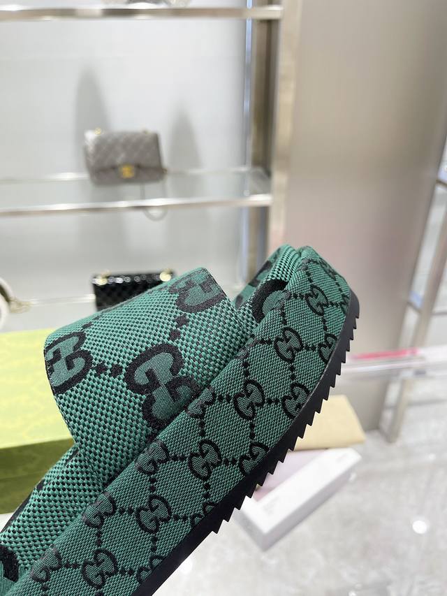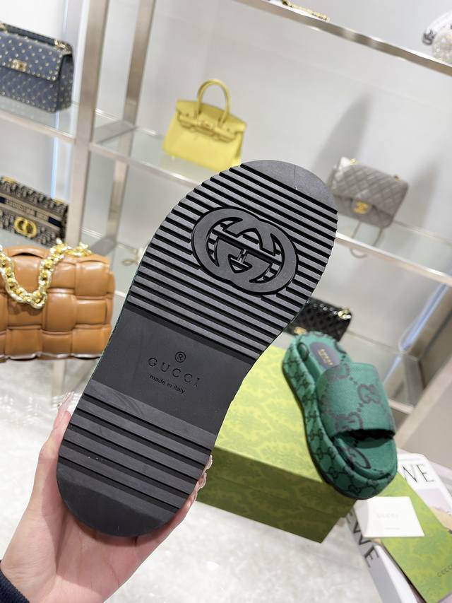 / 古奇gucci高版本最新限量厚底拖鞋 顶级品质发售 购入正品开发 . 材质.工艺与原版一致鞋面:原版提花工艺内里:混种羊皮大底:意大利私模大底码数:35-40码