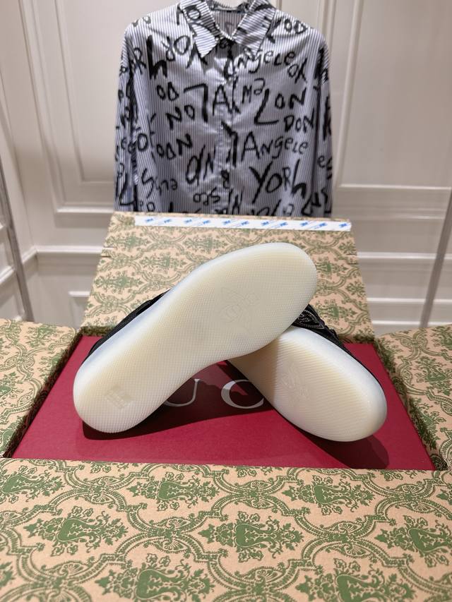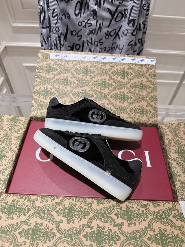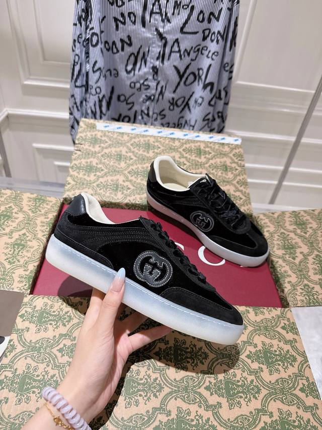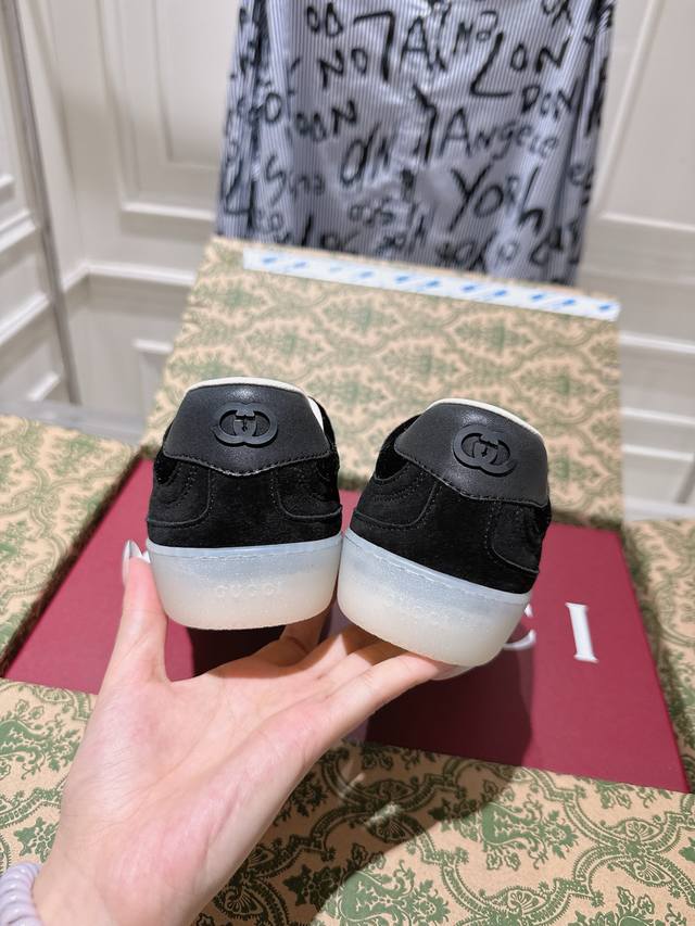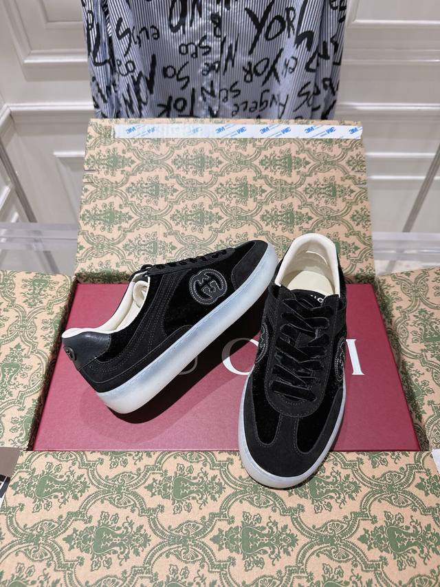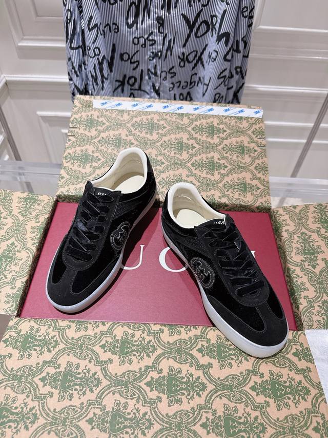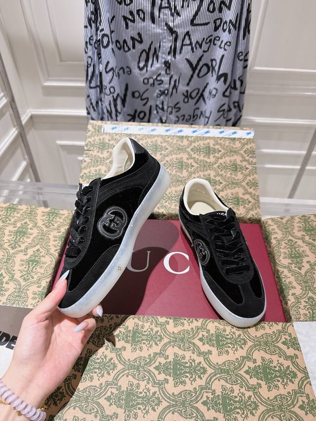 新款出货Gucci 2025 秋冬系列运动鞋灵感源自70年代复古篮球鞋,饰有Gucci标志性元素,例如互扣式双G标志。该款采用绒面革和皮革饰边。原版Tpu鞋底、原版面料、原版羊皮内里羊皮垫脚原版套楦工艺一比一折骨复刻!舒适追求极致!