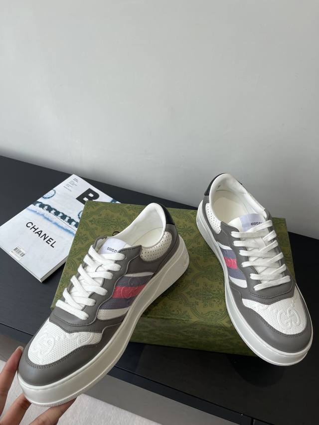 / 女款 男款420Gucci 新色小白鞋 无敌好看又好穿的饼干鞋 很百搭又超级轻 复古感十足搭配厚底 增高显腿长 面料原版定制进口牛皮 冲孔工艺内里水染羊皮里 T