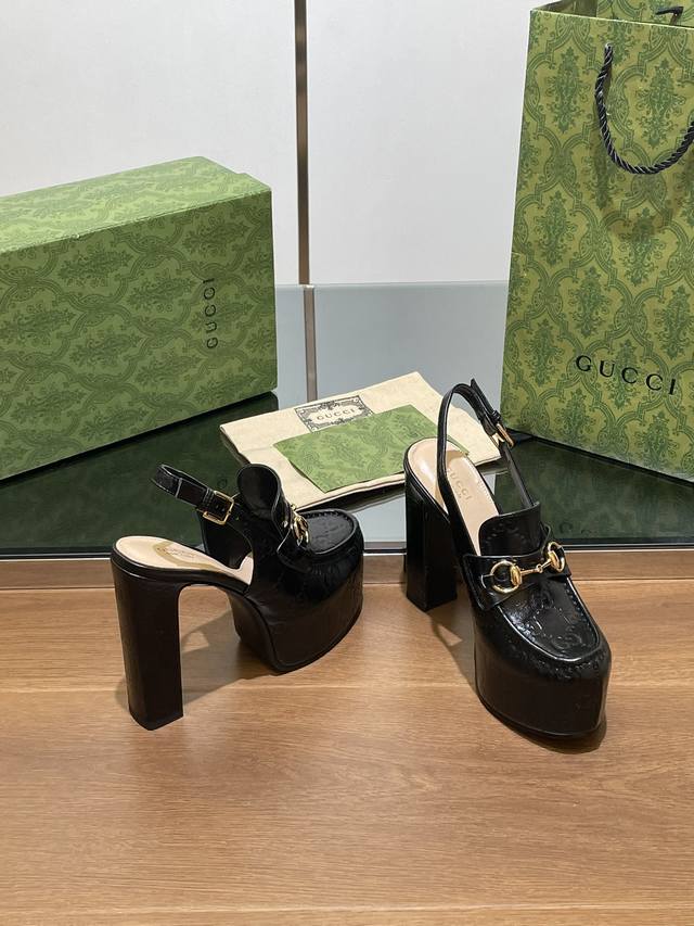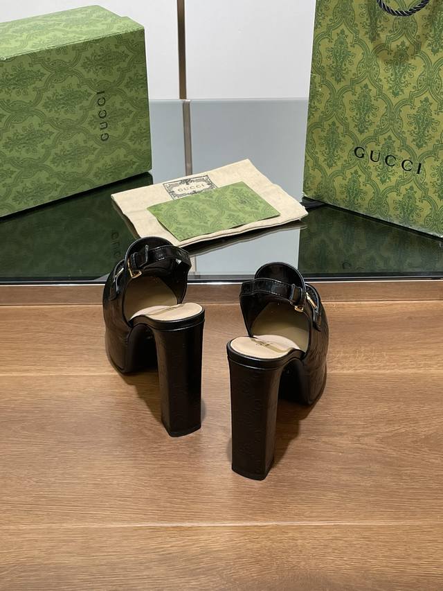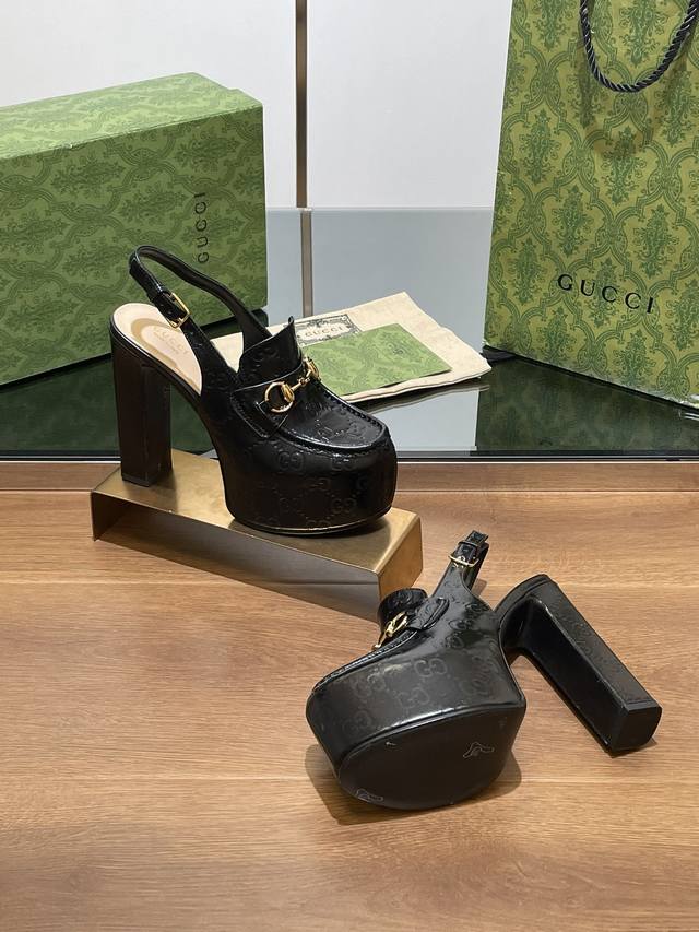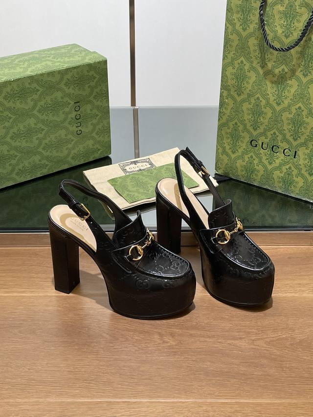 小牛皮 Gg压花皮 Gucci 古奇 秋季新品防水台马鞍扣 马衔扣 厚底后系带乐福鞋高跟厚底防水台慕勒鞋,鞋柜必备款 原版套楦 高端品质