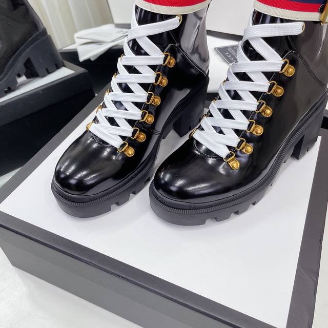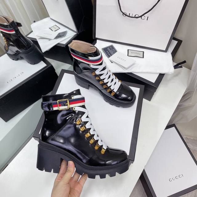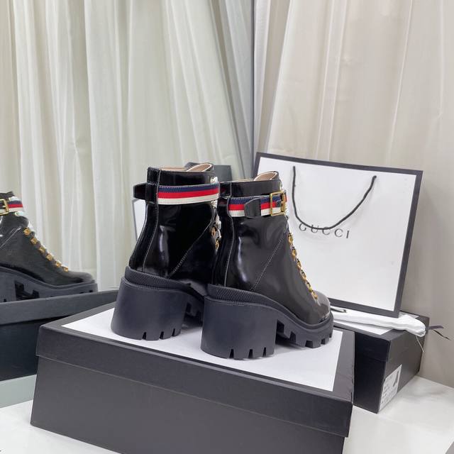 工厂价 古奇官网最新爆款五金一比一开模,跟正品一样的刻花饰边包钻,高帮刺绣小蜜蜂,采用沟纹鞋底设计,两侧配以松紧镶饰,便于套脚穿着。可拆卸踝带上点缀璀璨的水晶,刻花饰边将水晶包裹其中,营造复古珠宝质感。正面装饰标志性的双g造型配件